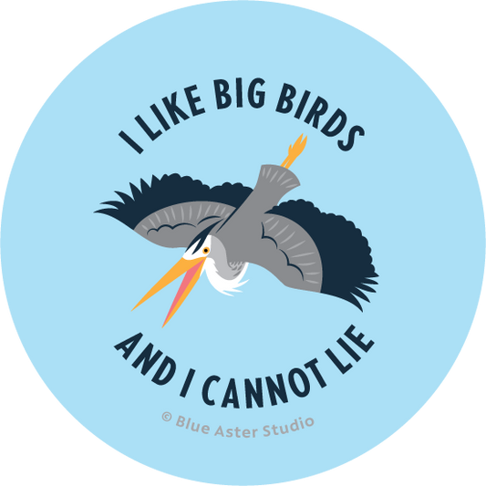 Pinback Button - Bird Heron - "I Like Big Birds and I Cannot Lie"