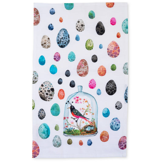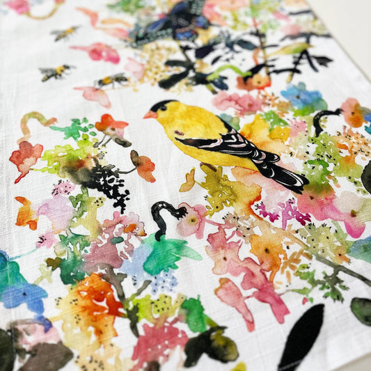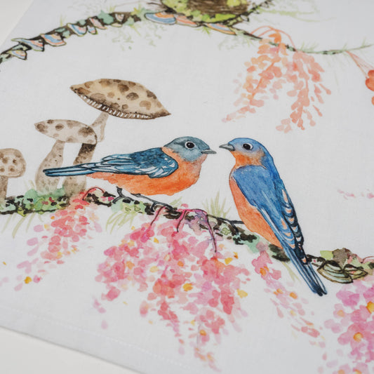 Tea Towel - Welcome Little Birdies Floral Wreath
