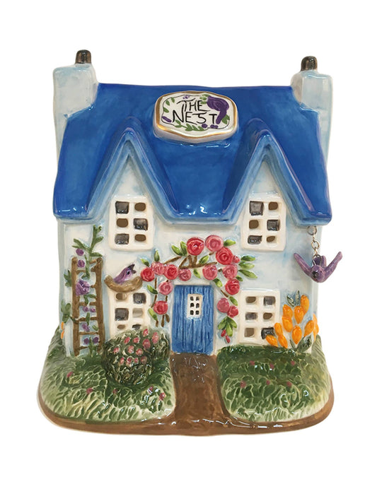 Tea Light Holder - Glass Art - Hummingbird on Brown Background