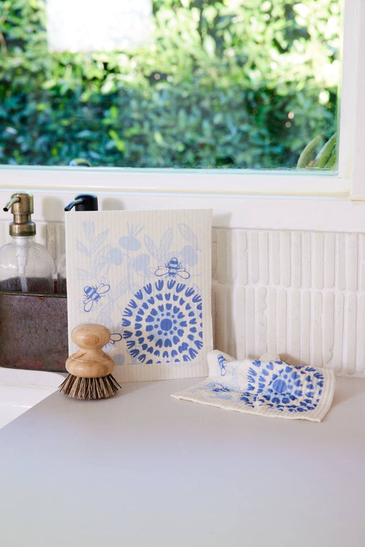 Eco-Friendly Dishcloth - Bloom in Blue with Bees
