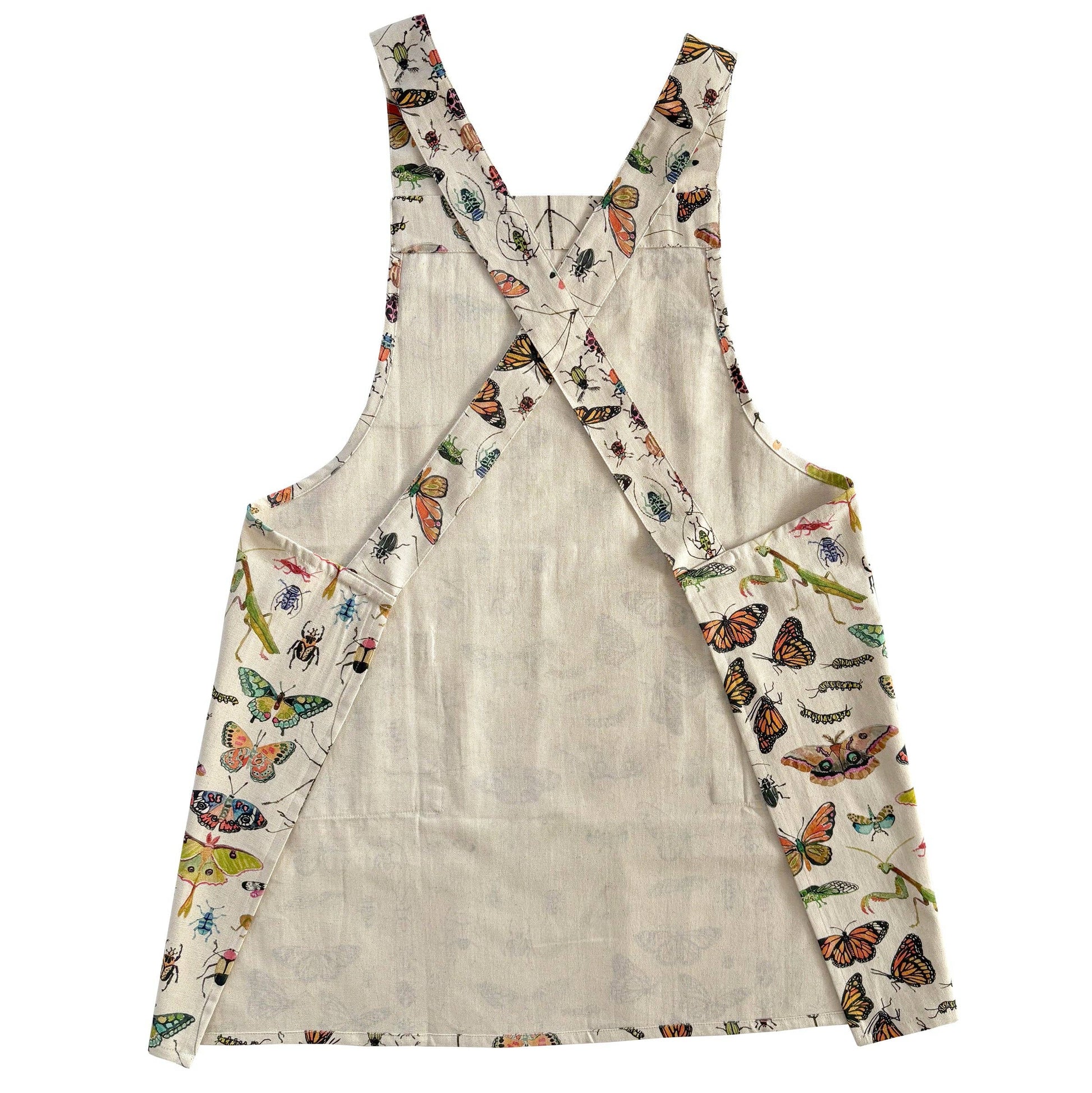 The classic butcher's apron is reinvented with cross back straps. This smock apron is generously sized to fit a wide range of bodies. Perfect in both the kitchen and garden, the full coverage and side pocket provide comfortable protection from cooking, planting and crafting alike. Colorful and conversational, they feature Betsy’s original watercolor designs.