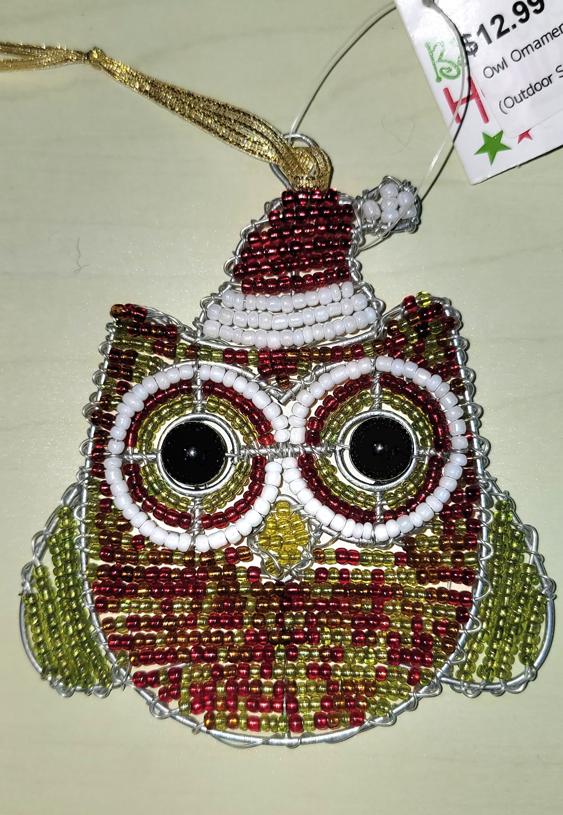 Holiday - Beaded Art Ornament - Owl with Santa Hat