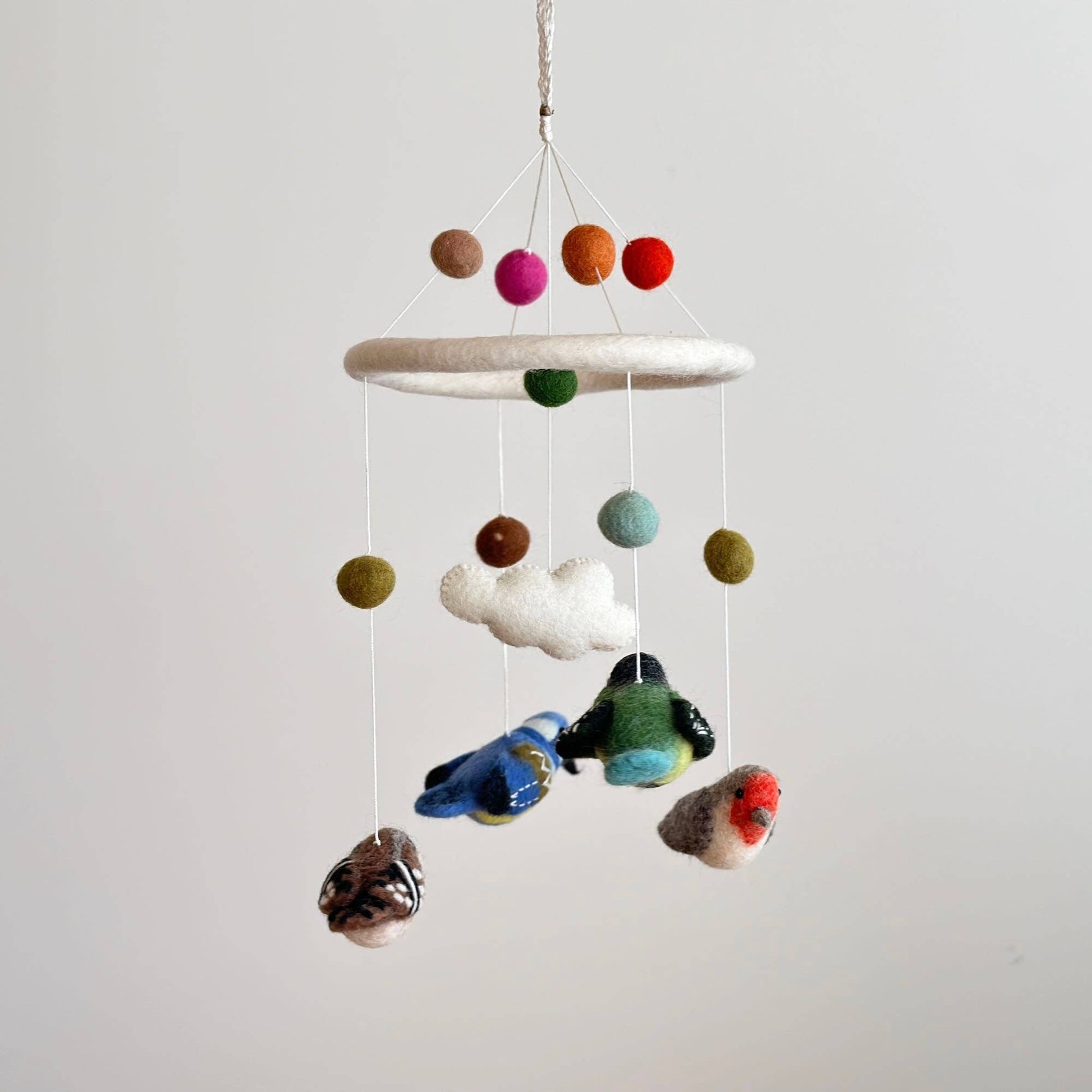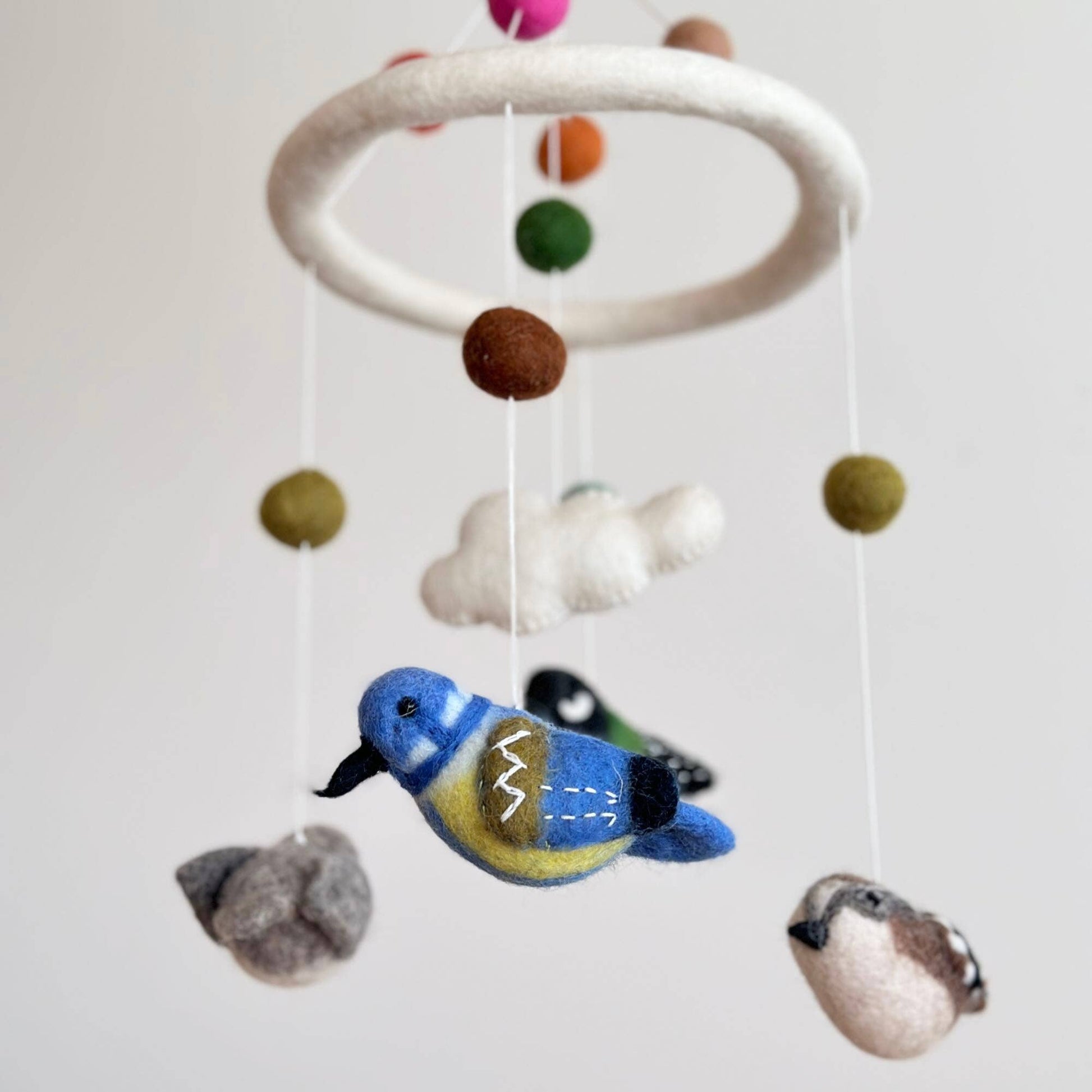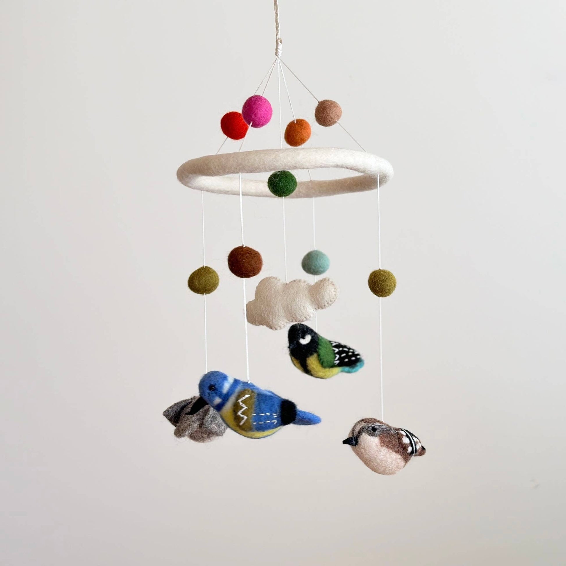 Add a touch of magic to the nursery with our wool-felt bird baby mobile.