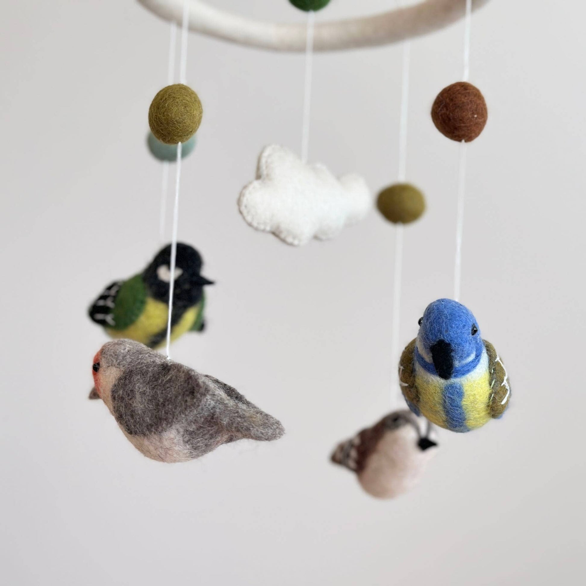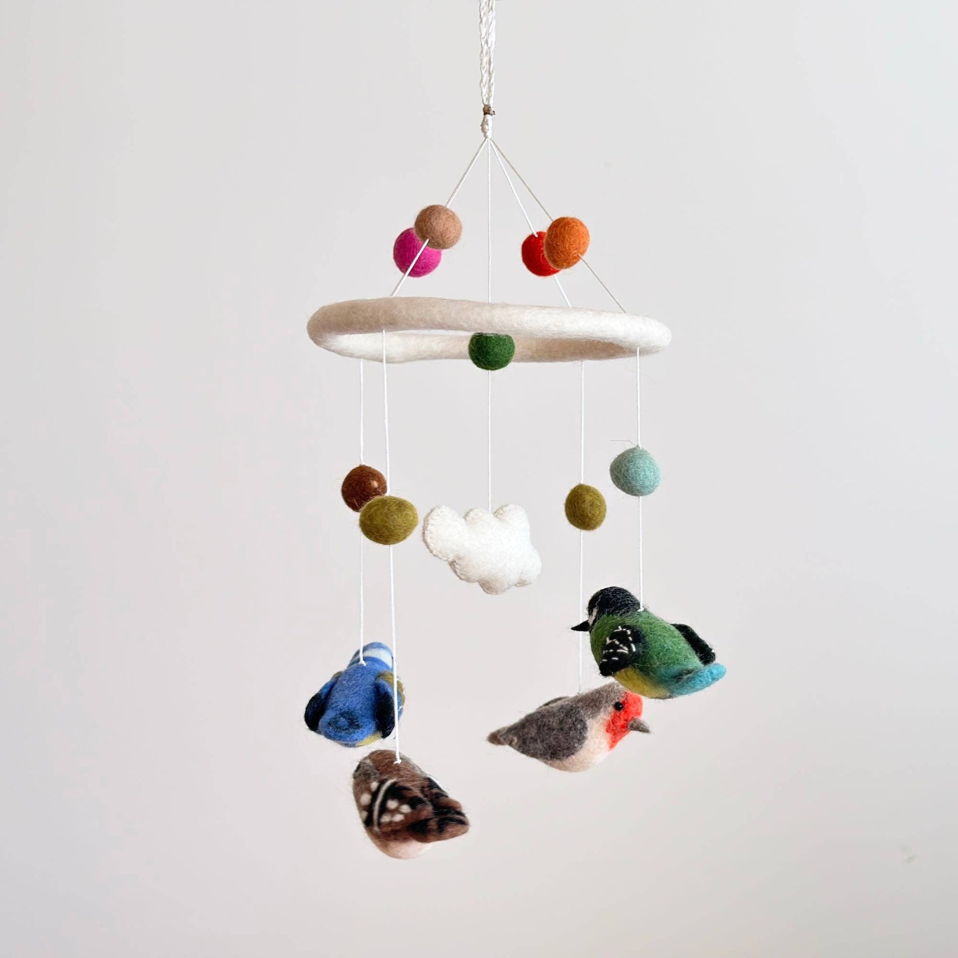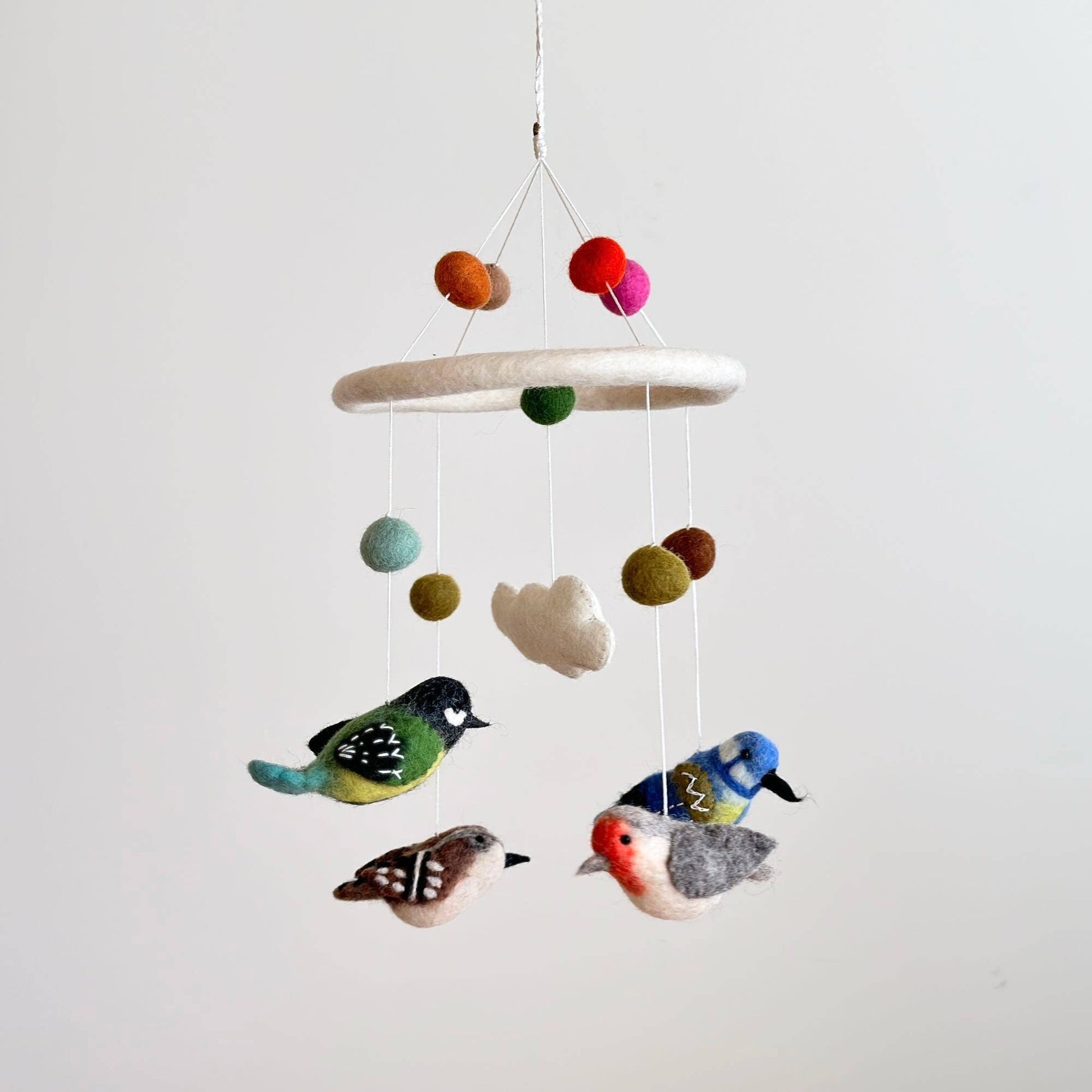 Add a touch of magic to the nursery with our wool-felt bird baby mobile.