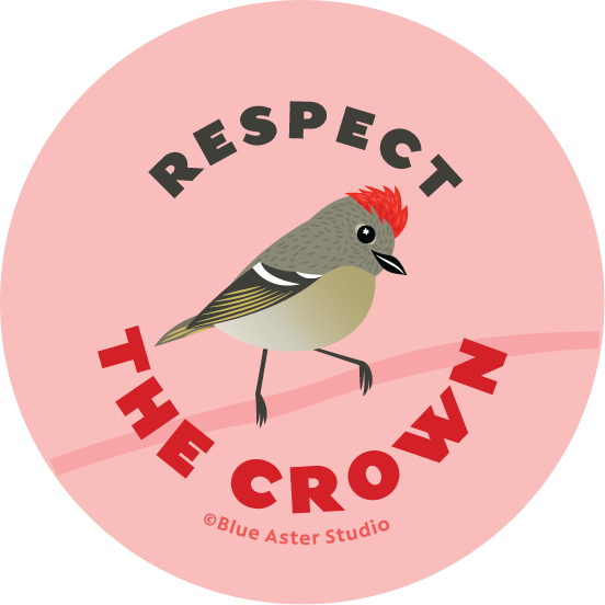 Pinback Button - Bird Kinglet - "Respect the Crown"