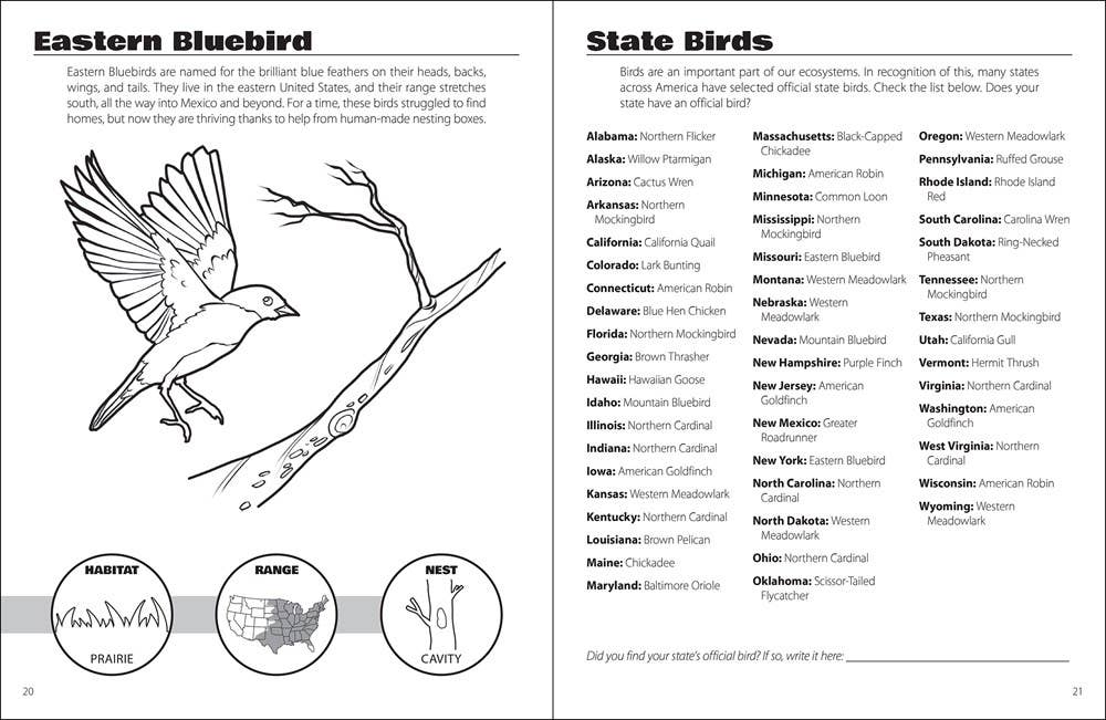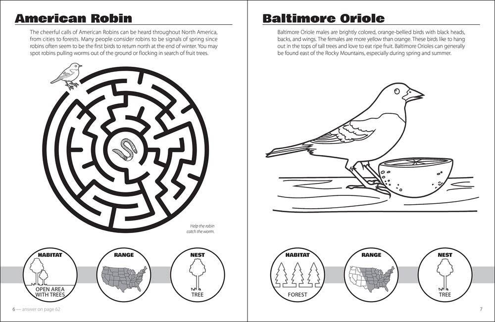 Coloring pages present facts such as the birds’ colors and diets, where they live, and where you are most likely to see them. Activities like mazes, word finds, and dot-to-dots reinforce the information in unique and creative ways. Plus, the Birds & Friends Activity Book offers suggestions for family activities, from making a birdbath to going on a bird hike.