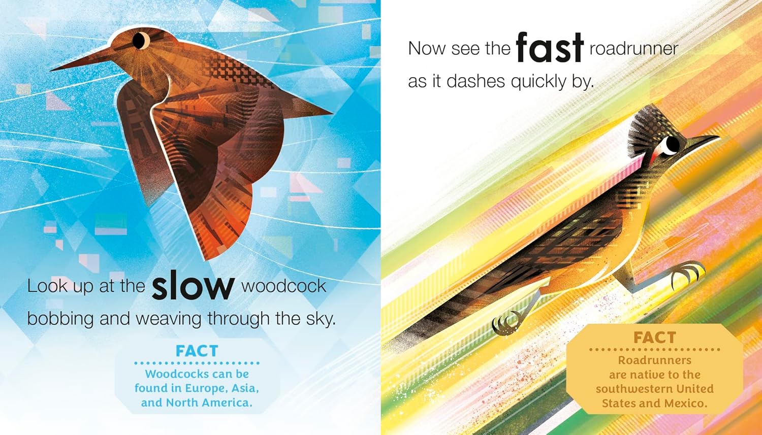 From the slow woodcock to the fast roadrunner, kids will explore some of the most popular birds around the world while learning about opposites, too! The whole family can bring these books outdoors and bird together!