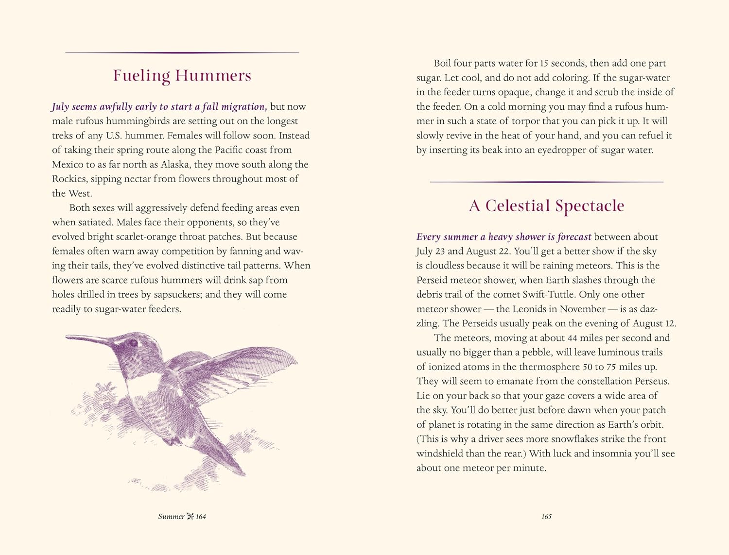 This beautifully crafted collection of short, seasonal essays combines in-depth information with evocative descriptions of nature’s marvels and mysteries. Williams explains the weather conditions that bring out the brightest reds in autumn leaves, how hungry wolf spiders catch their prey, and why American goldfinches wait until late July or August to build their nests.