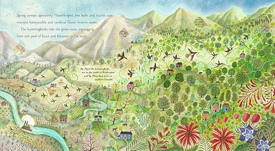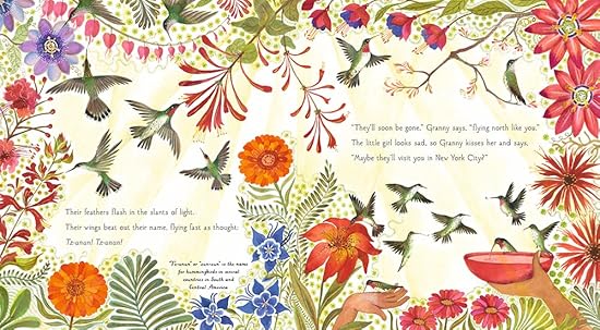 Tz'unun! Tz'unun! A buzz of wings, a flash of color . . . There’s a very special visitor in Granny’s garden. It’s a hummingbird! And it’s just about to begin its long migration, heading north to its nesting ground. Watch as it spreads joy to all who encounter it along its two-thousand-mile trek. In an engaging text sprinkled with facts, zoologist Nicola Davies introduces readers to this valiant bird, lighter than a nickel, while Jane Ray’s lush, intricate illustrations, accented in gold Pantone, highlight its jewel-like beauty. More details about hummingbirds, along with a bibliography and an index, are available at the end to budding ornithologists.