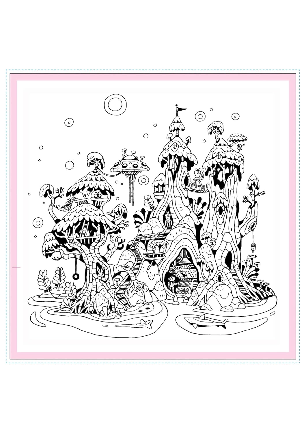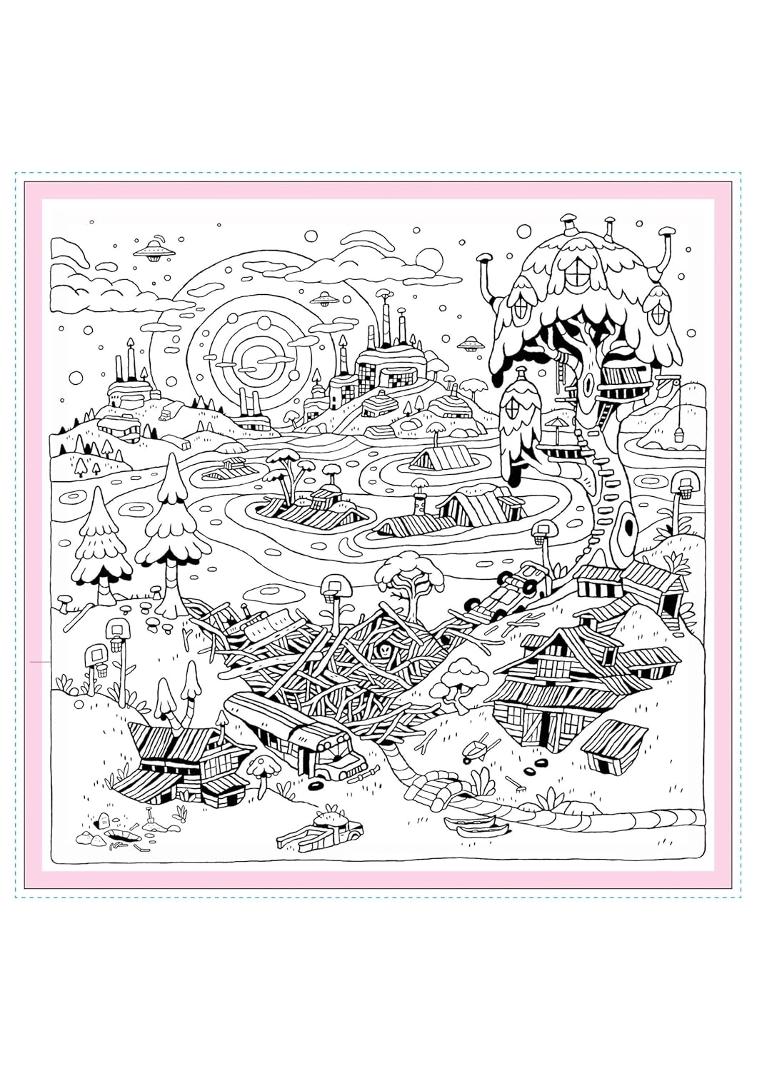 Get ready to enter the world of The Lost Forest — flooded towns and tree forts, wild kids and spooky cryptids, strange aliens and flying saucers of all shapes and sizes. Each page holds an imaginative world to discover as you color them in, and they get more magical and mysterious as the book goes on.