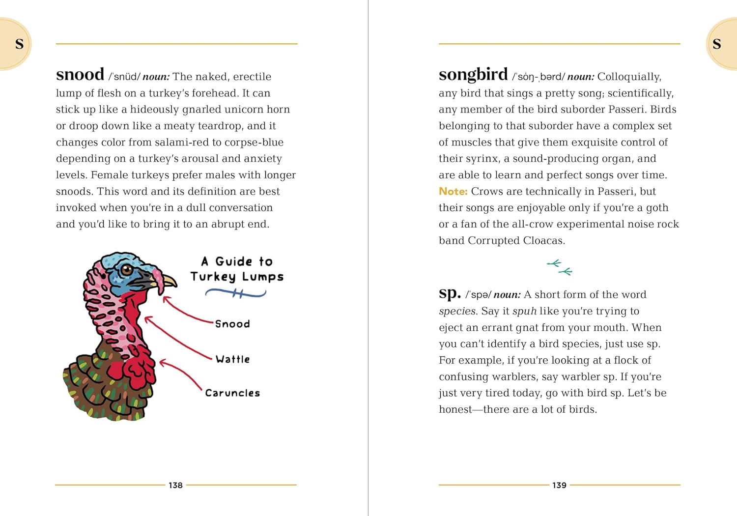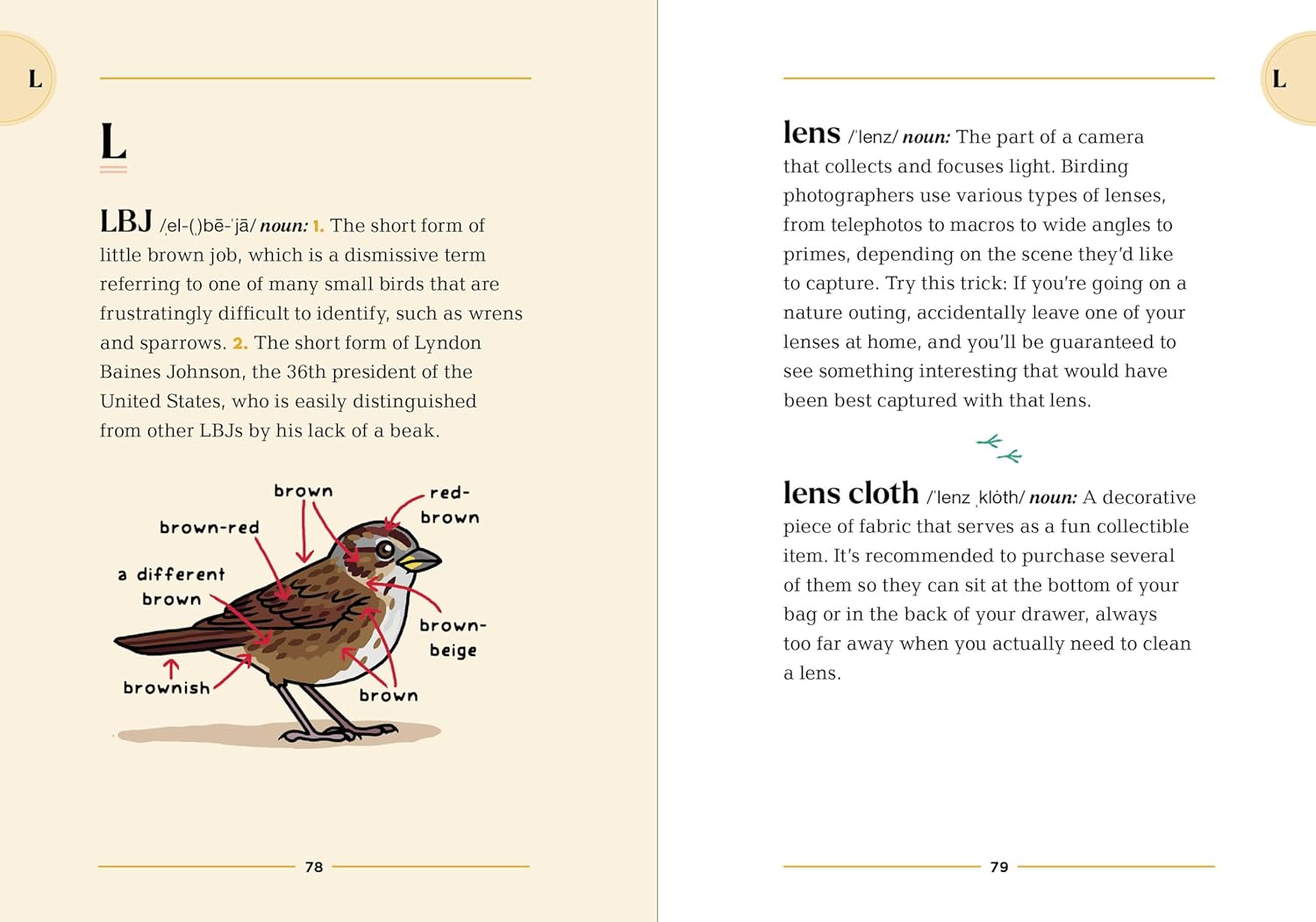 With birding more popular than ever, this clever pocket-sized guide is a unique gift that celebrates the obsession with hilarious definitions and witty illustrations of terms that birders know and love.
