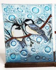 Handmade recycled glass with water-based paint. Beautifully made, this will be a great accent in anyone's home.