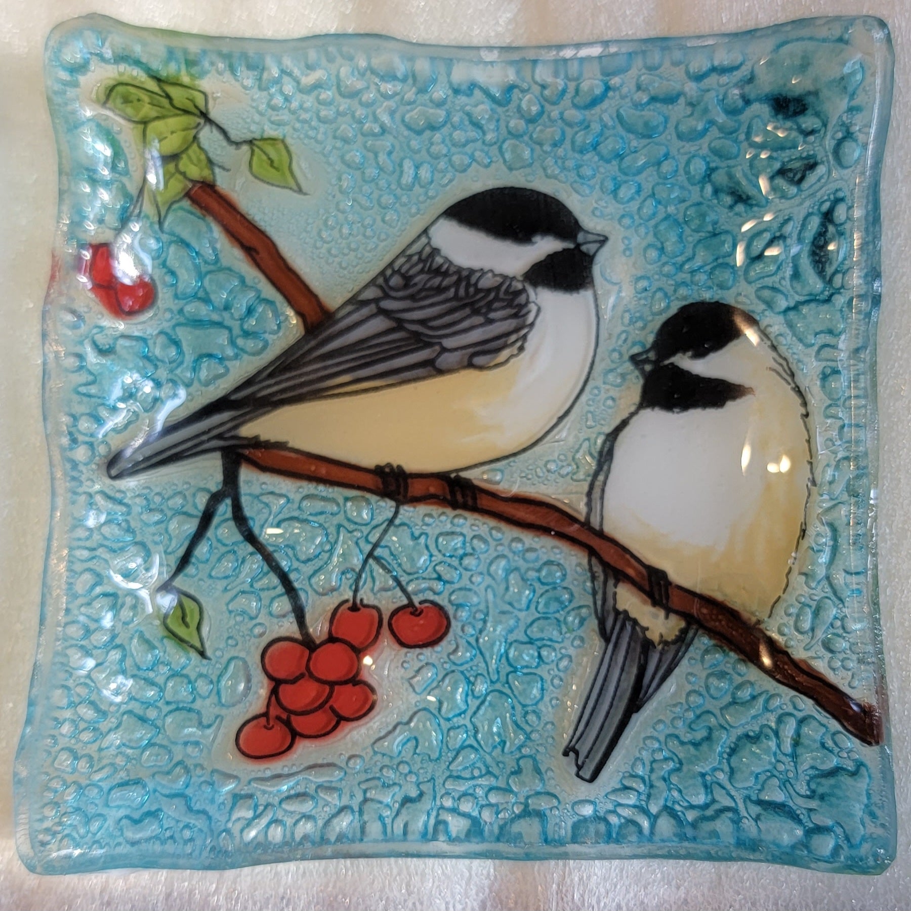 Trinket Dish Glass Art - Chickadee Pair