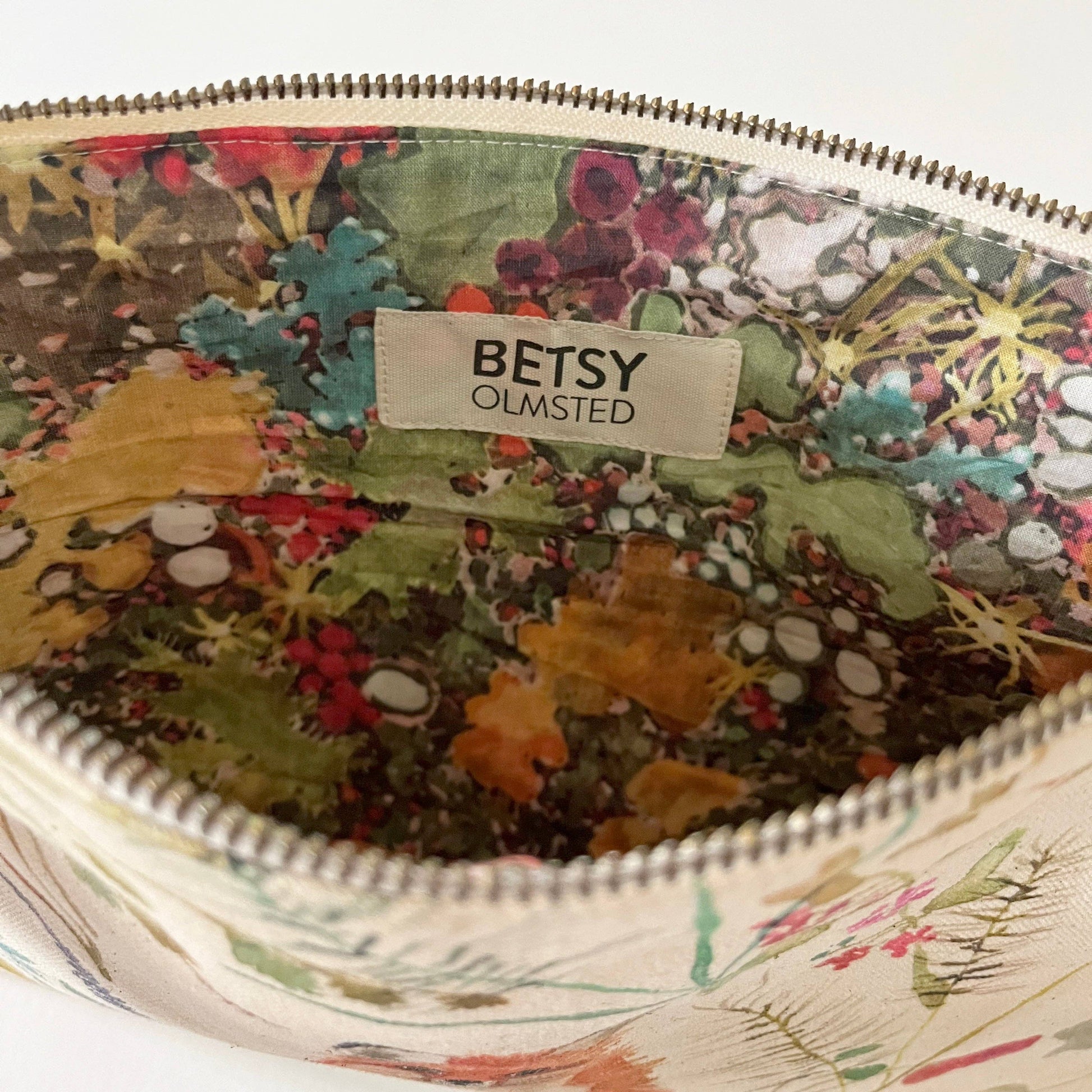 Featuring an original watercolor design by Betsy Olmsted, this clutch is double-sided, containing a happy surprise print on the inside!