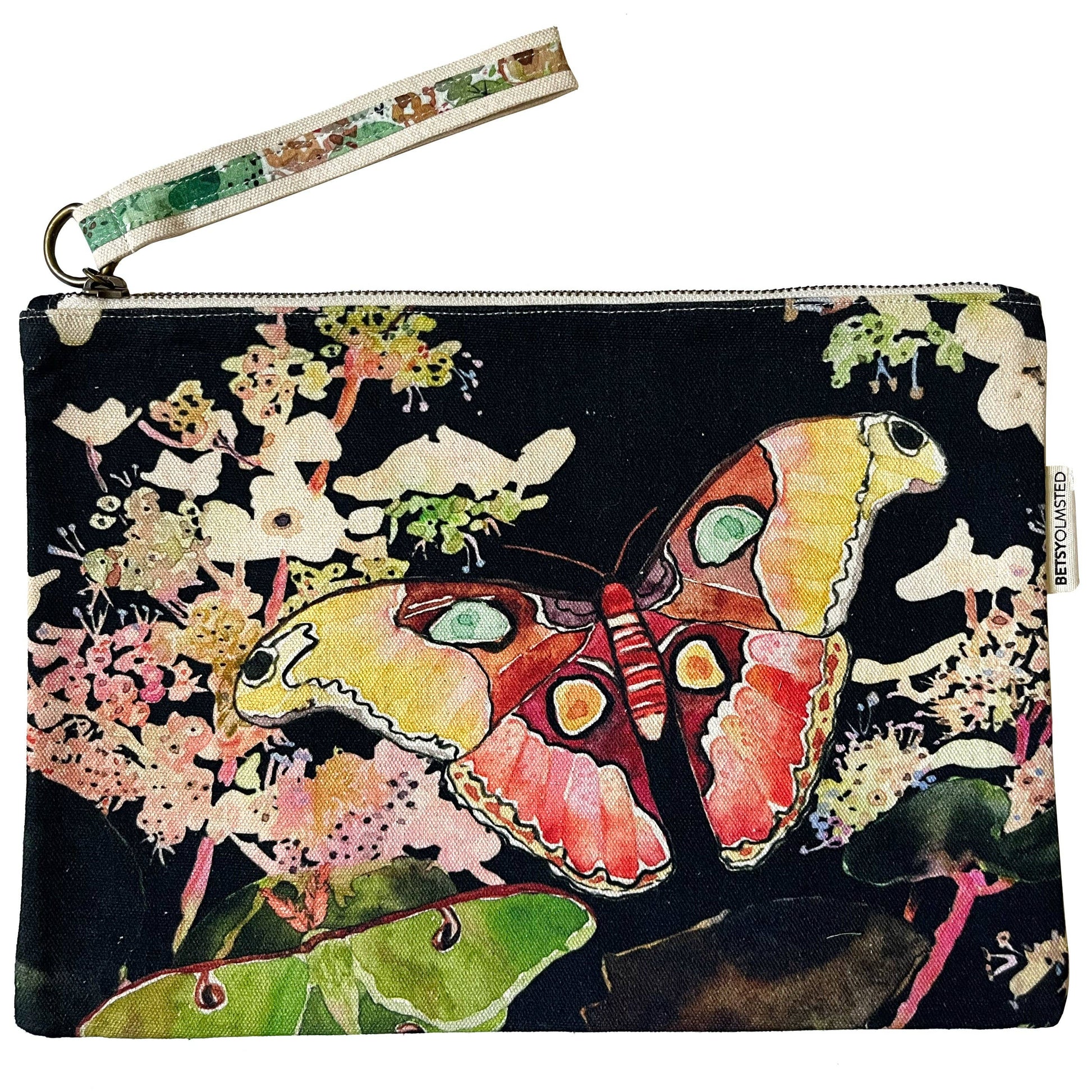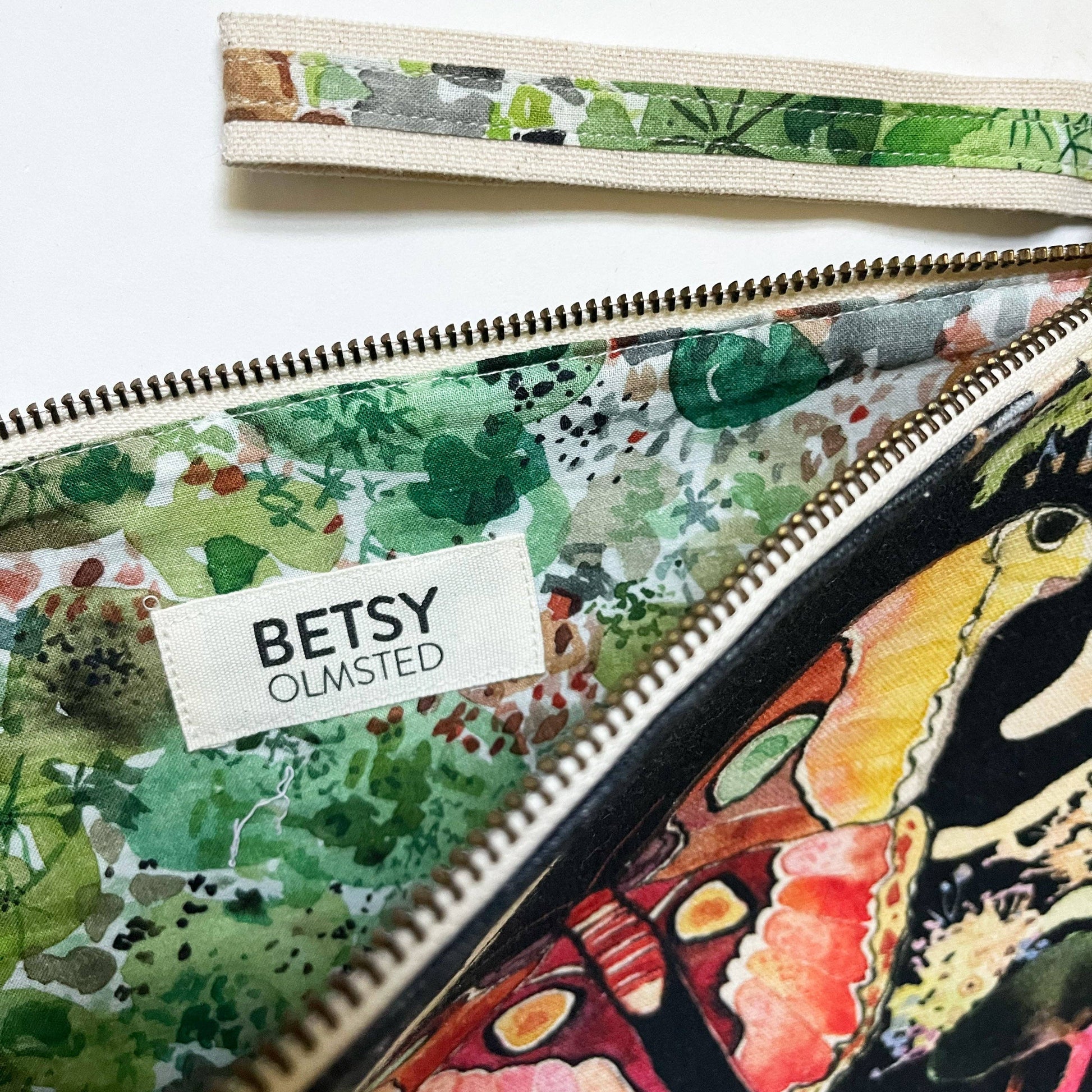 Featuring an original watercolor design by Betsy Olmsted, this clutch is double-sided, containing a happy surprise print on the inside!