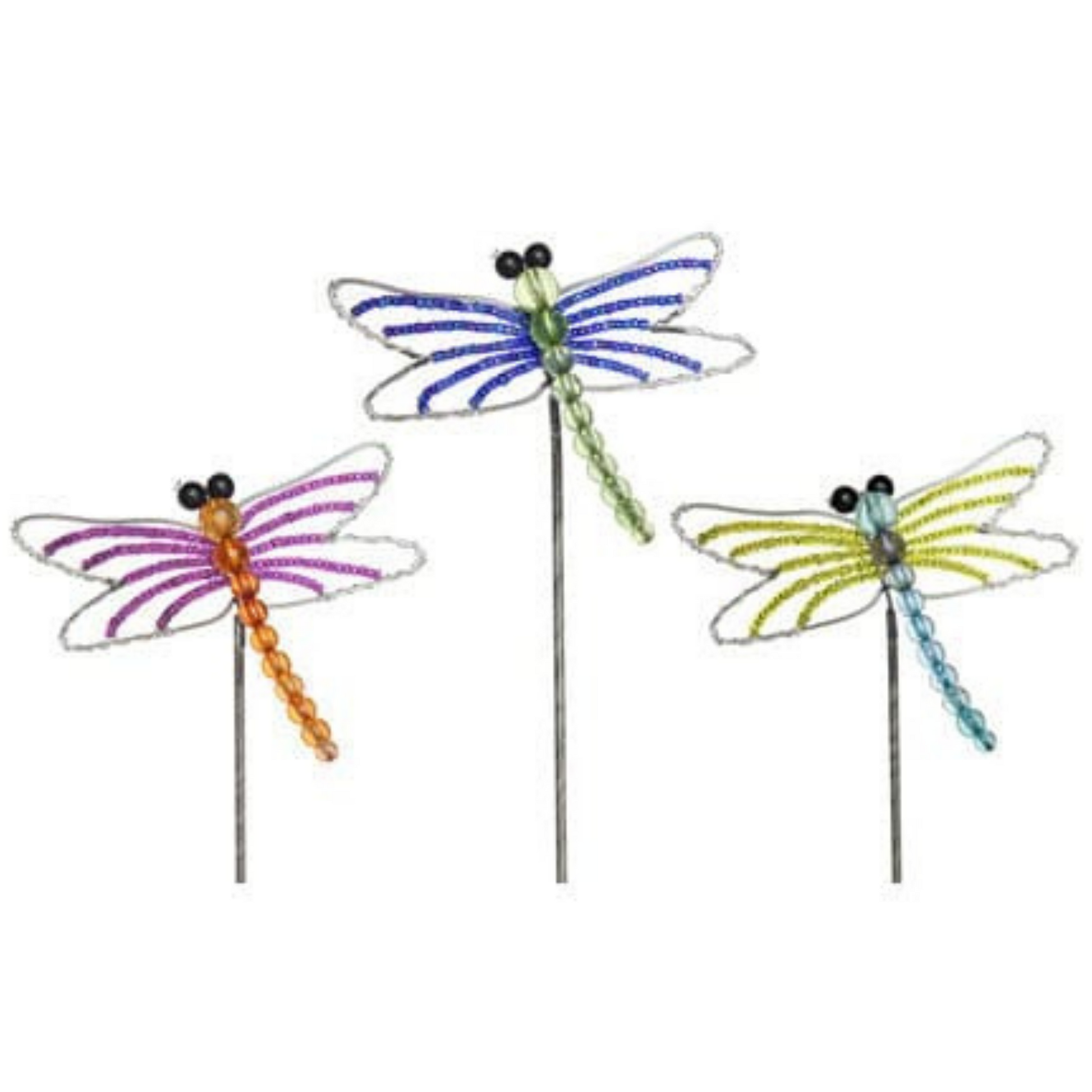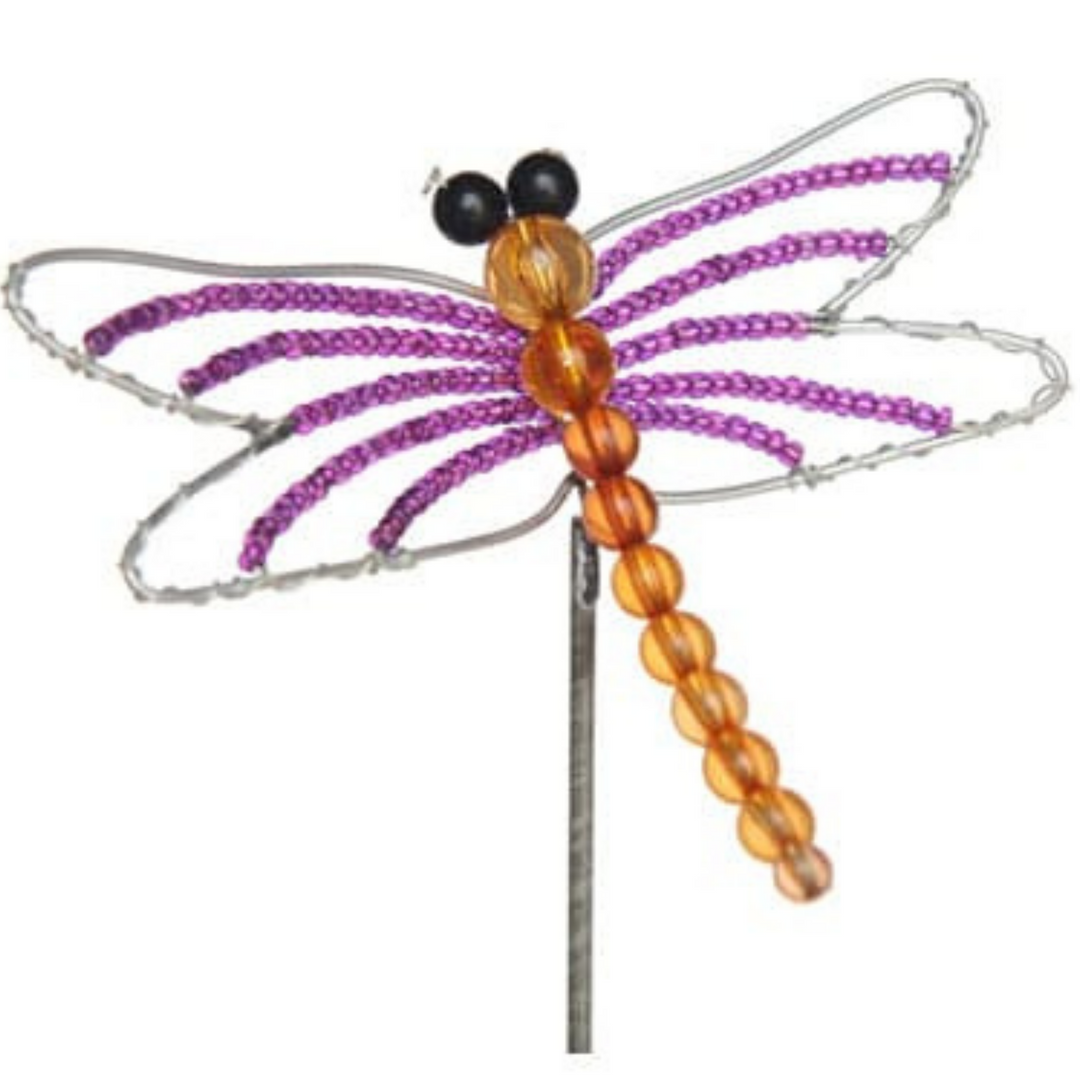 This dragonfly garden stake adds a splash of color and whimsy to your garden or potted plants.