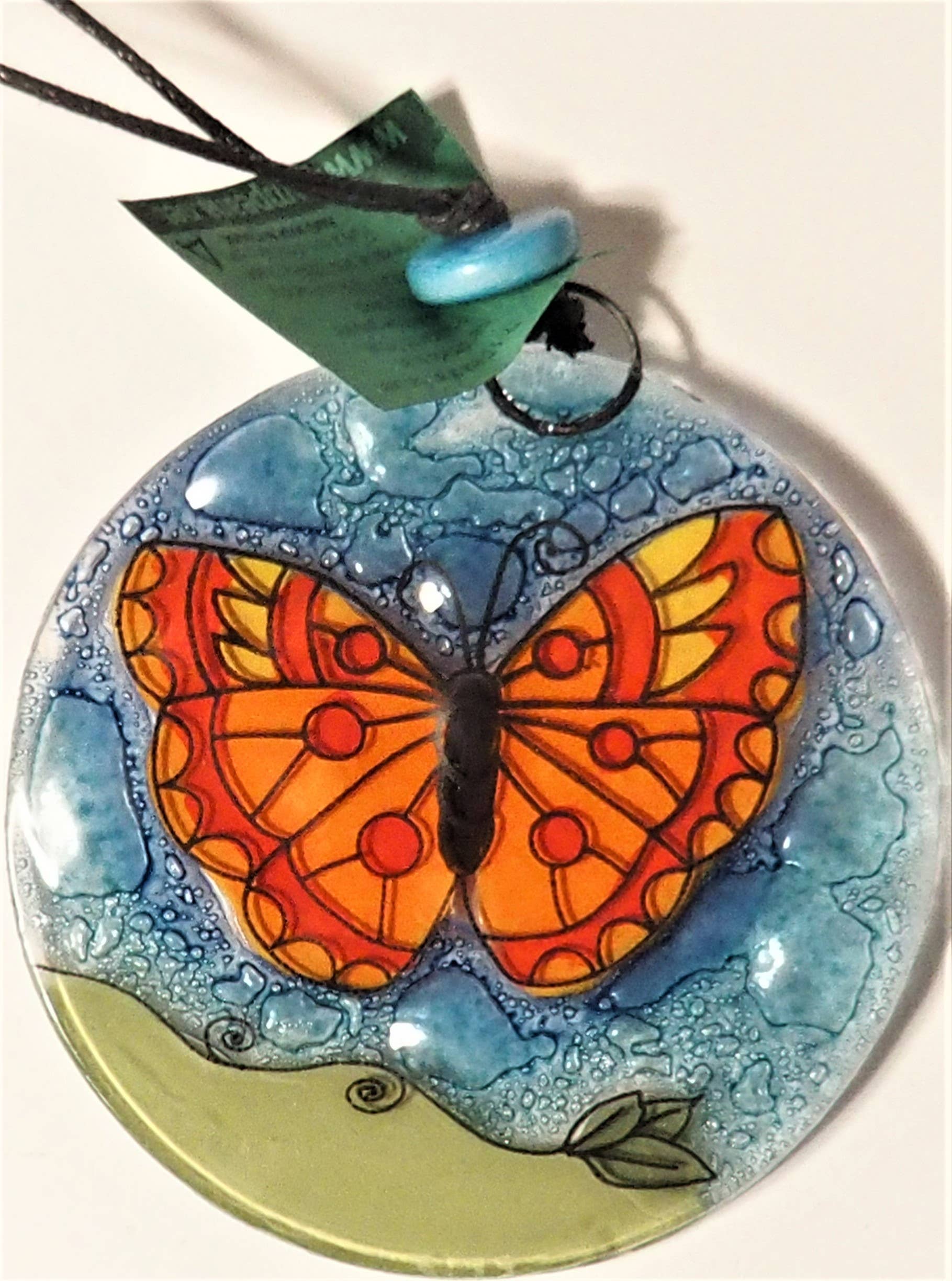 Glass Art Ornament/Suncatcher - Orange Butterfly