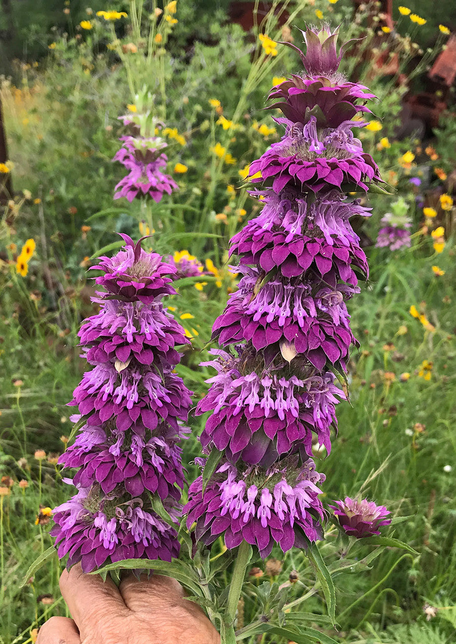 Lemon Mint, otherwise known as Horsemint, Purple horsemint, Plains Horsemint or Lemon Bee balm is an easy recognizable old-time favorite. The scientific name of Monarda Citriodora, was given to this wildflower in honor of Nicholas Monarda a Spanish Physician in the 1500’s who discovered several medicinal properties of plants found in the America’s. The name Citriodora refers to the citrus like scent that the plant has when the leaves are crushed. This scent makes it deer resistant and if you rub the leaves on your skin it makes a fair insect repellant also. It contains the oil citronellol that is used commercially in some insect repellants and lotions. Native Americans, such as the Hopis, Pueblo and Tewa, used the leaves in flavoring rabbit and stews and brewed the leaves for a tea to soothe sore throats and cold symptoms.