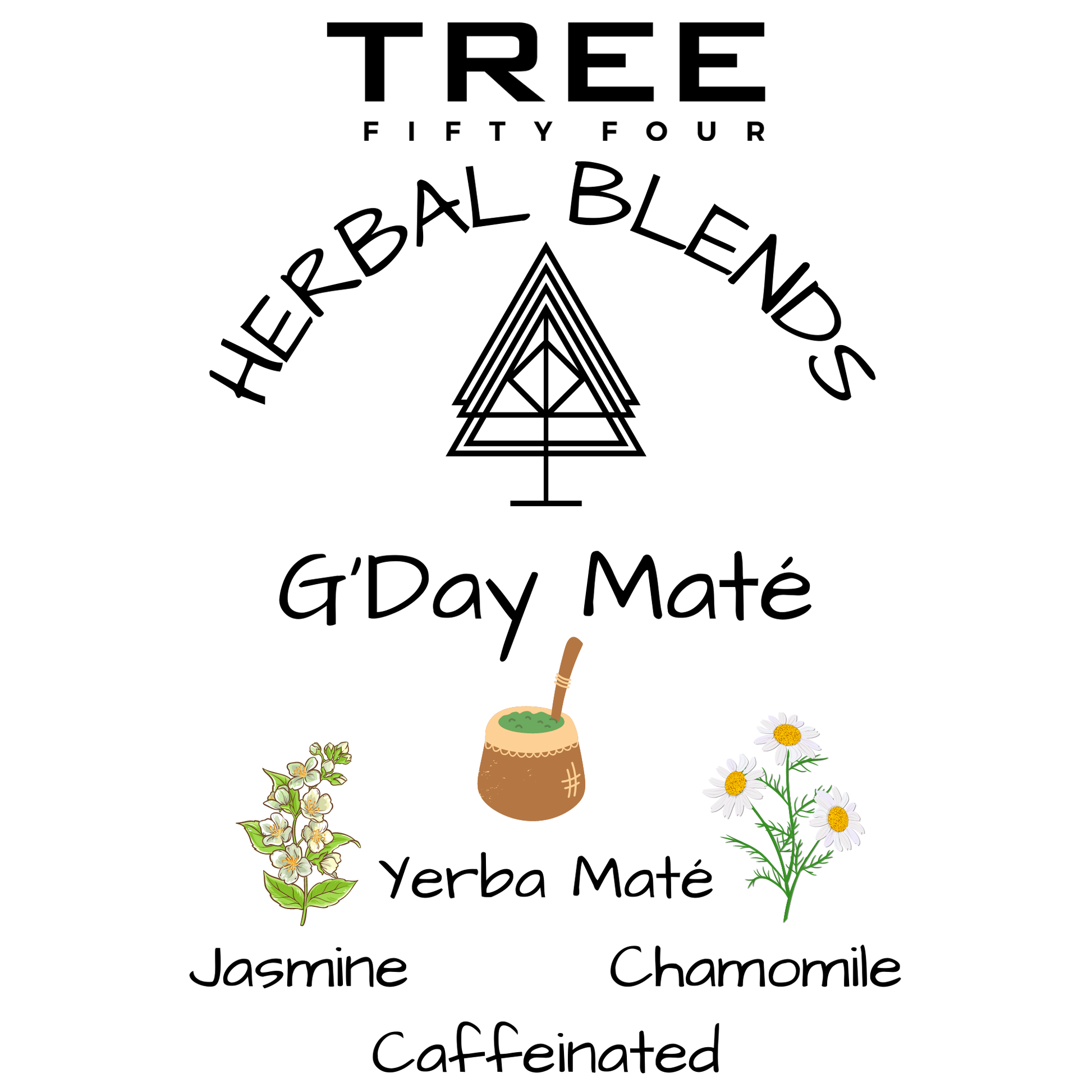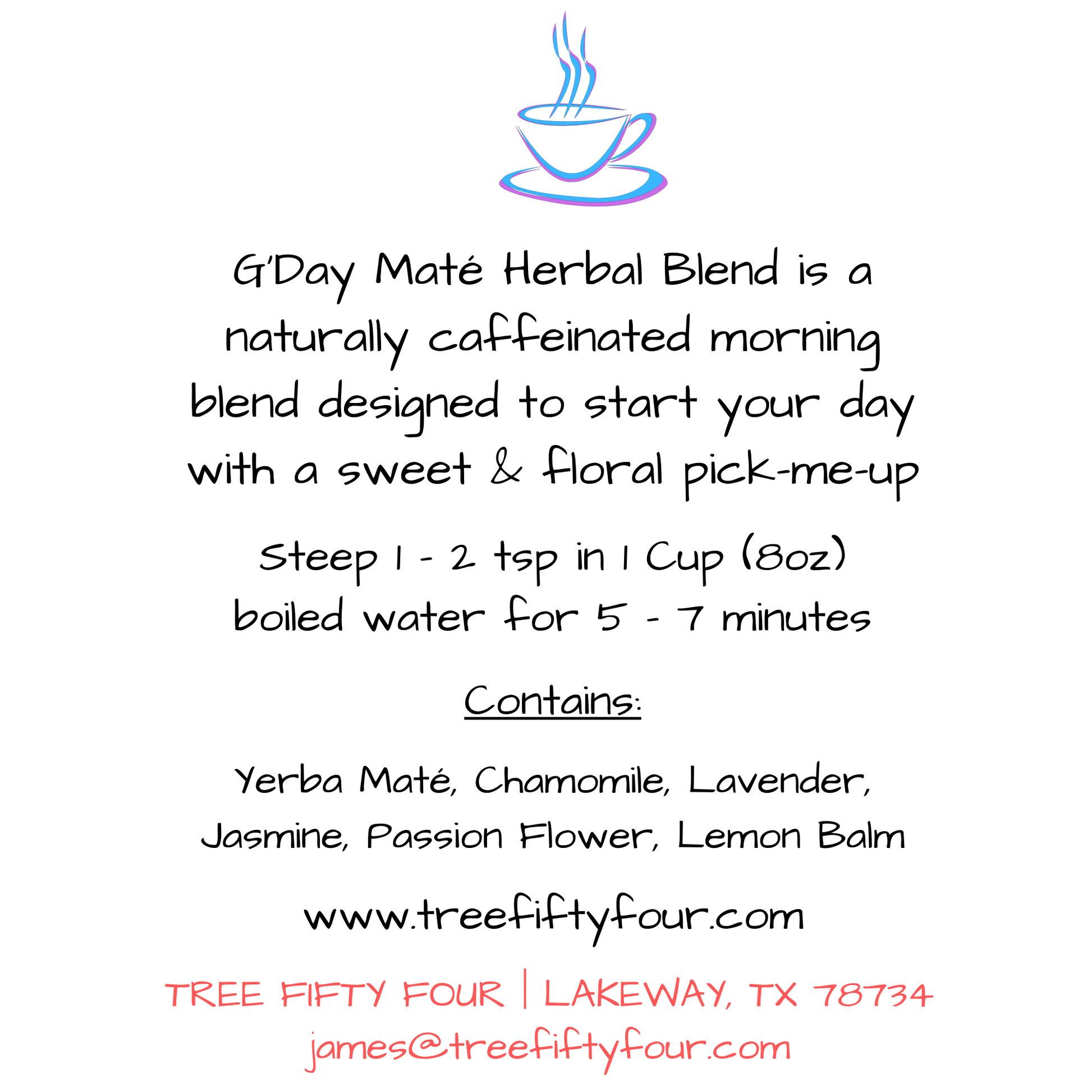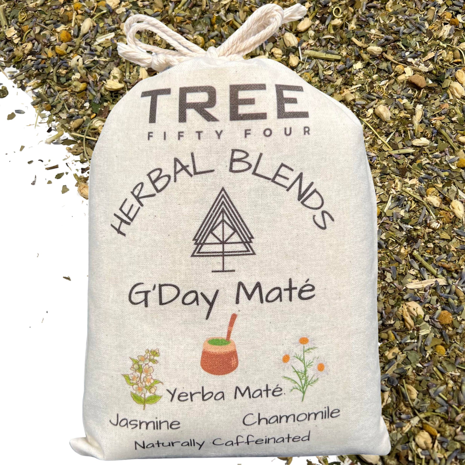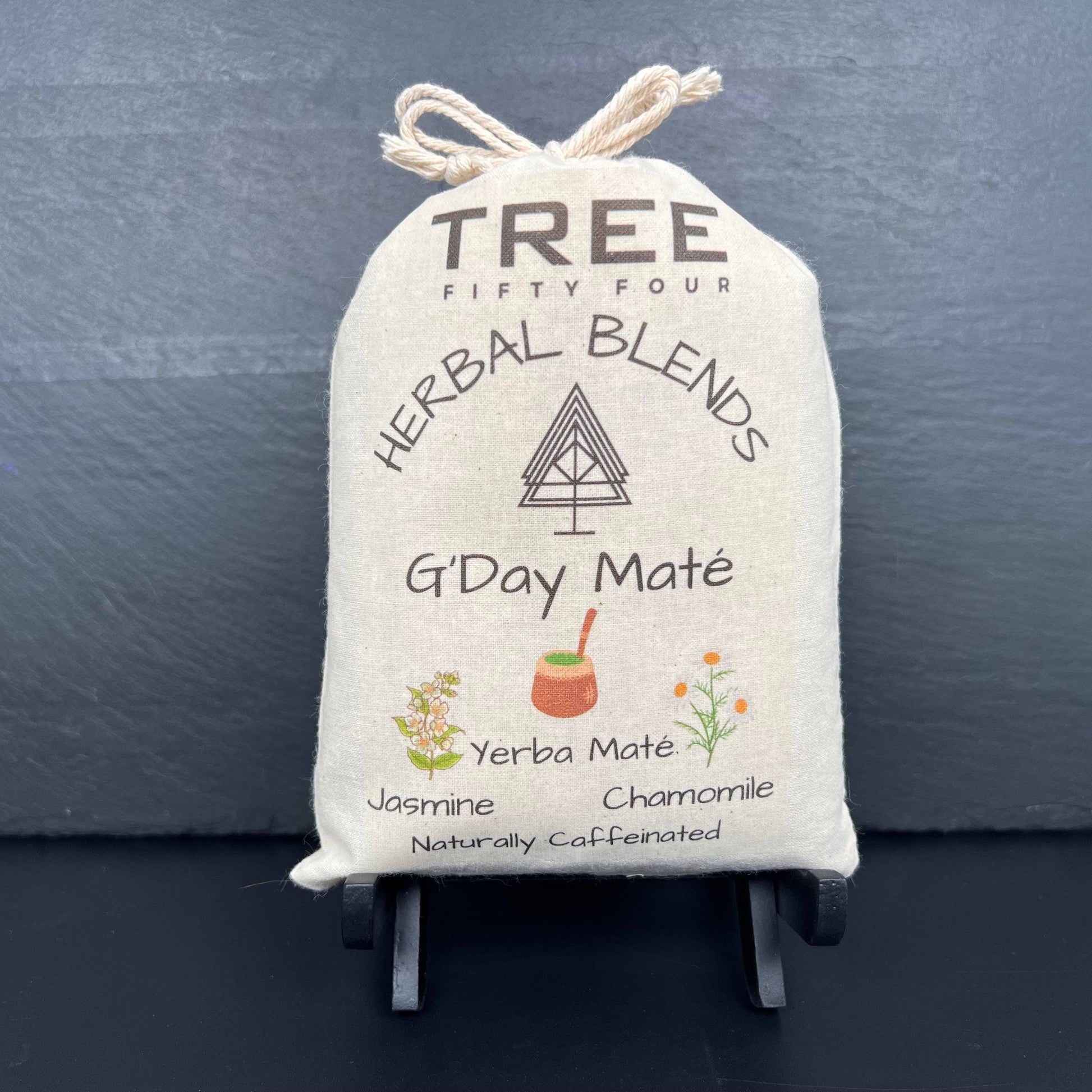 Loose Tea in Drawstring Sachet - Tree Fifty Four - G'Day Maté Herbal Tea Blend (3oz)