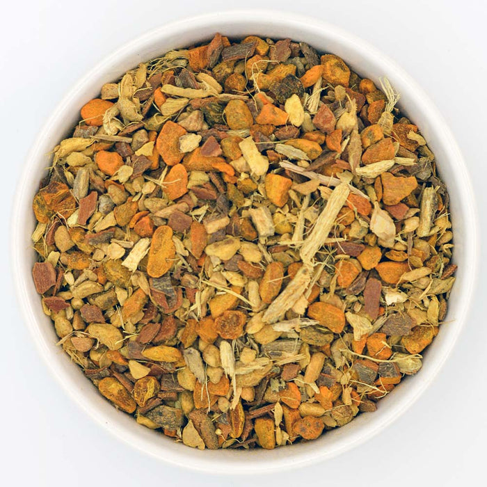 Ingredients: Organic turmeric, organic ginger, organic cinnamon, organic licorice, organic black pepper.
