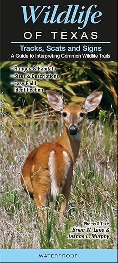 How do you know wildlife is there if you don’t see it? This practical, educational guide is an excellent resource for interpreting the signs and clues that Texas wildlife has left behind. Great for outdoor and nature enthusiasts of all ages. This conveniently sized guide features color photographs of some common and elusive Texas mammal, reptile, bird, and amphibian species and their key identifiers most likely encountered — tracks, scat, or signs. Common and scientific names, size dimensions of wildlife and tracks, and other field signs are described in this guide. Field identification assistance and educational tips are also presented. This pocket-sized, 12-panel, laminated, waterproof guide is great for outdoor adventures.