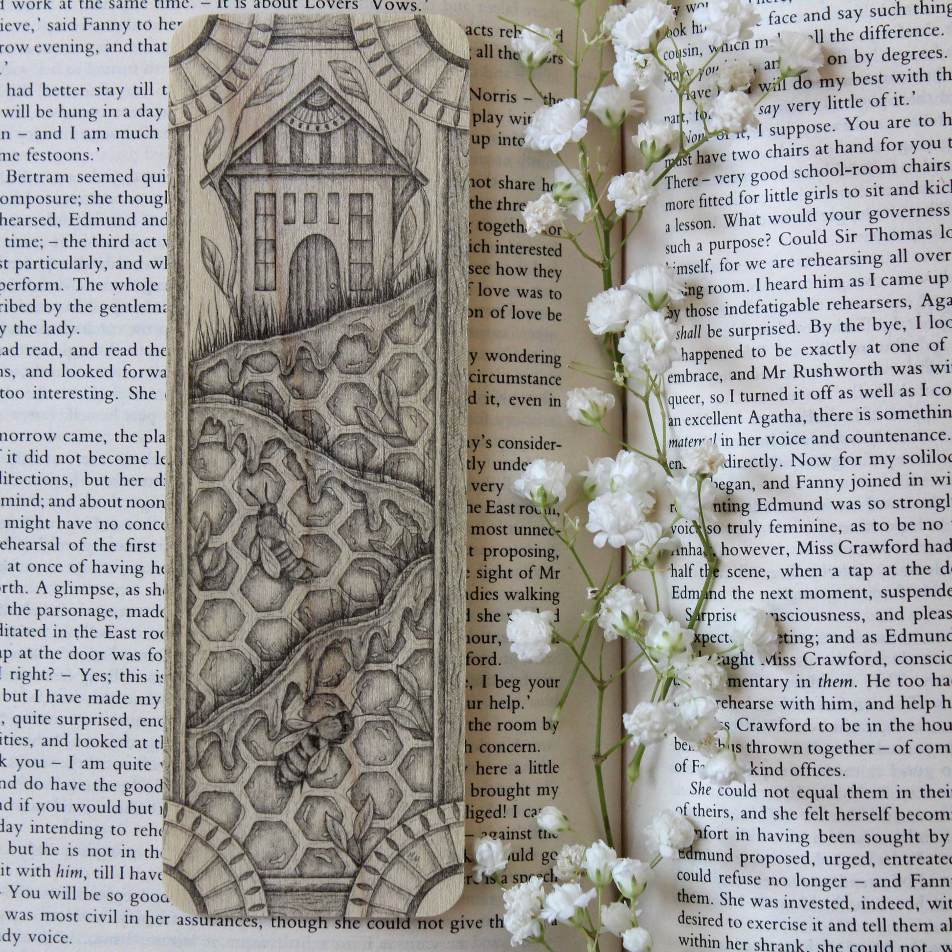 The House on the Hive Bookmark is made from 100% REAL Poplar Wood, and is thin enough to fit easily between the pages of any book. Each bookmark comes in a clear, protective sleeve.