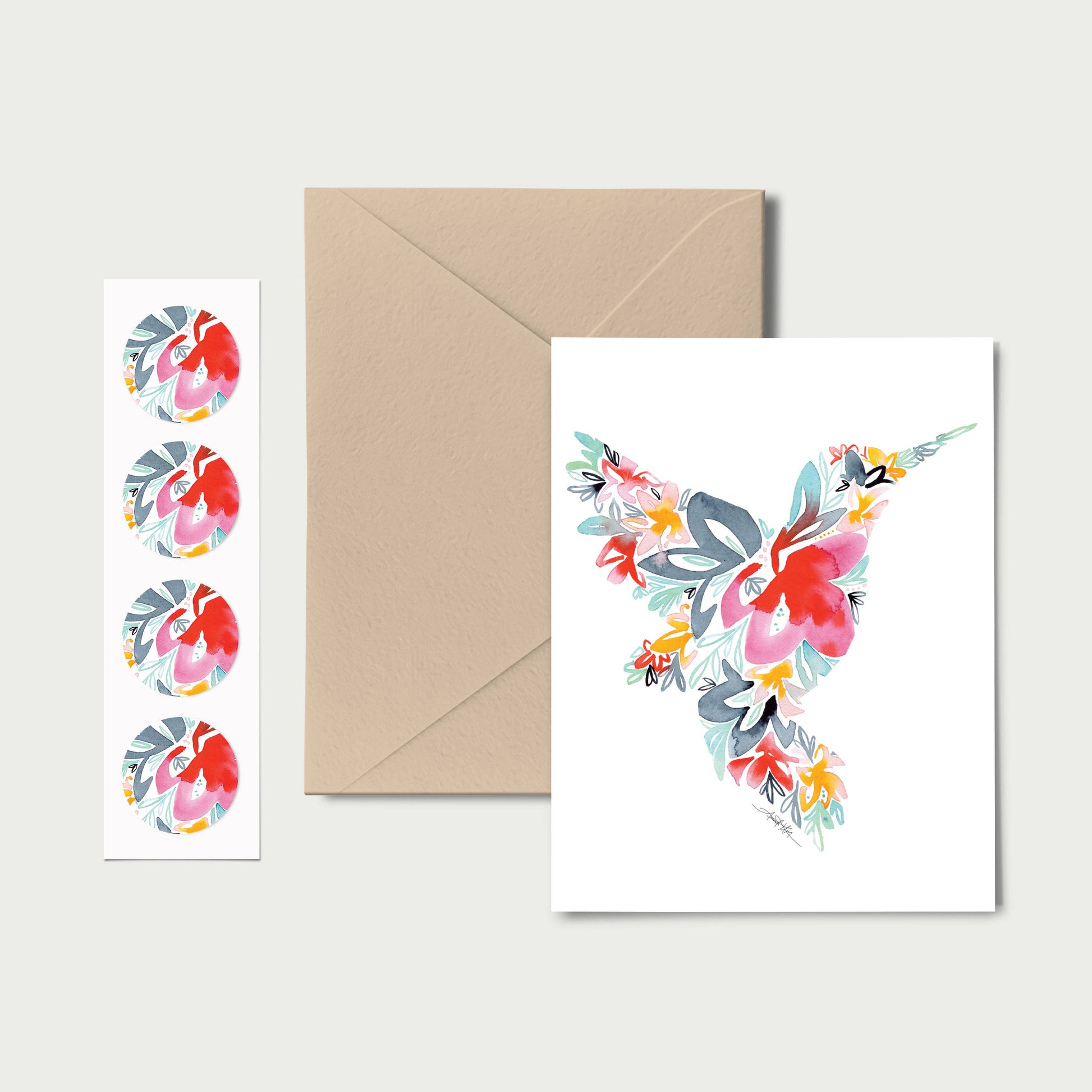 Notecard & Sticker Set - Hummingbird by Amanda Klein