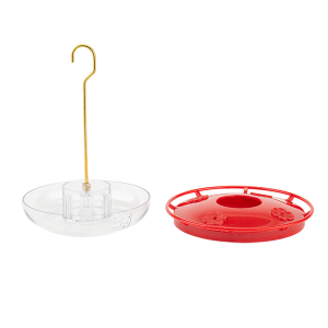 The High Perch™ hummingbird feeder is the perfect way to attract hummingbirds to any yard. The high perch allows hummingbirds to comfortably rest, providing you with better, longer views of the birds. The feeder has a clear bottom that allows you to see hummingbirds’ tongues lap up nectar (up to 12 times a second) as well as the level of the nectar solution. The feeder comes with a built-in ant moat to deter crawling bugs from reaching the nectar solution. It’s easy to fill, clean and hang.