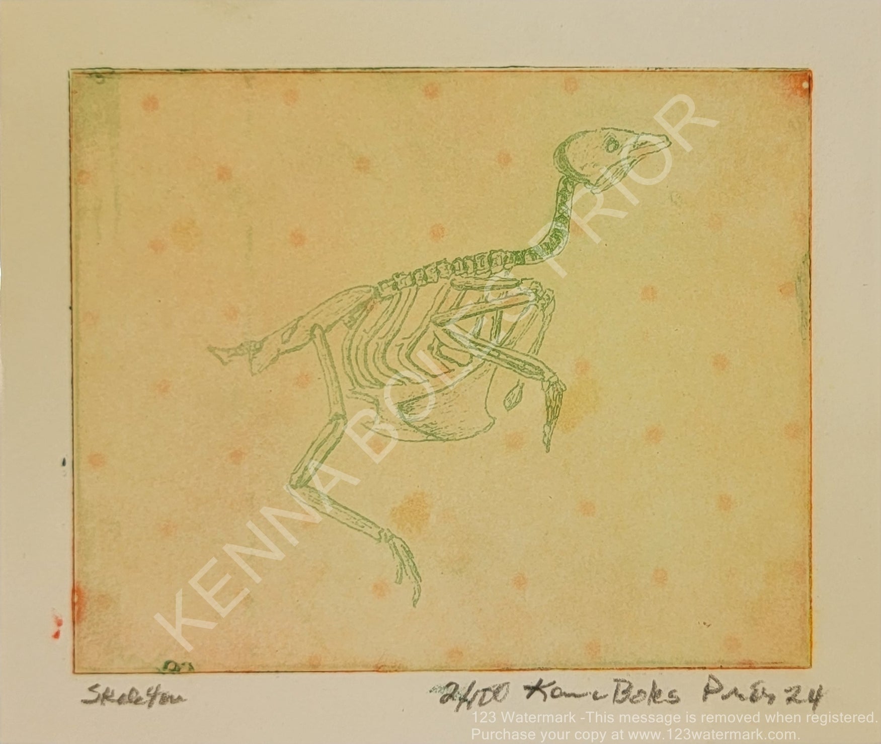 Kenna Boles Prior Original Artwork - 4" x 5" Photogravure - Bird Skeleton