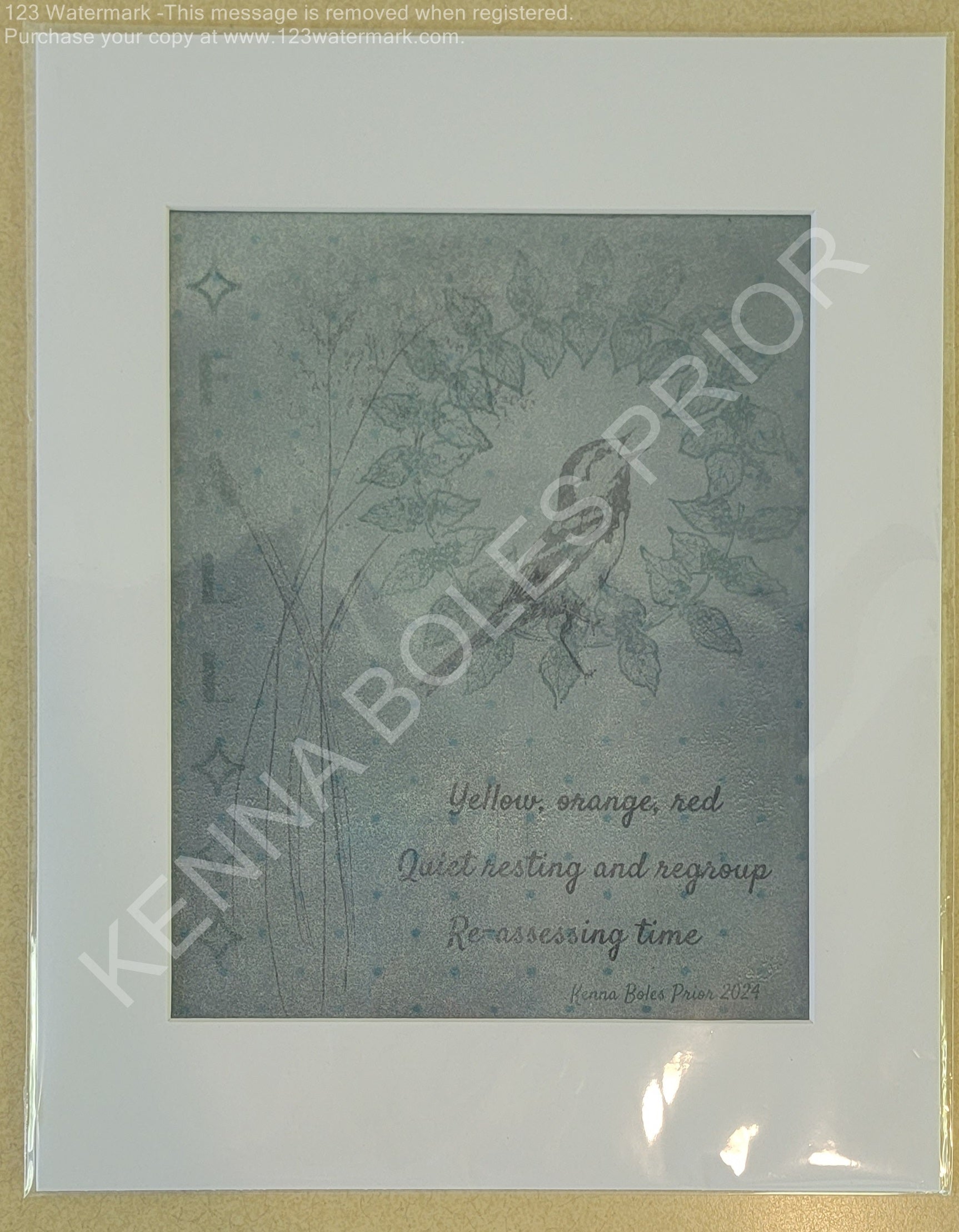 Kenna Boles Prior Original Artwork - 8" x 10" Photogravure - Golden-cheeked Warbler "Fall"