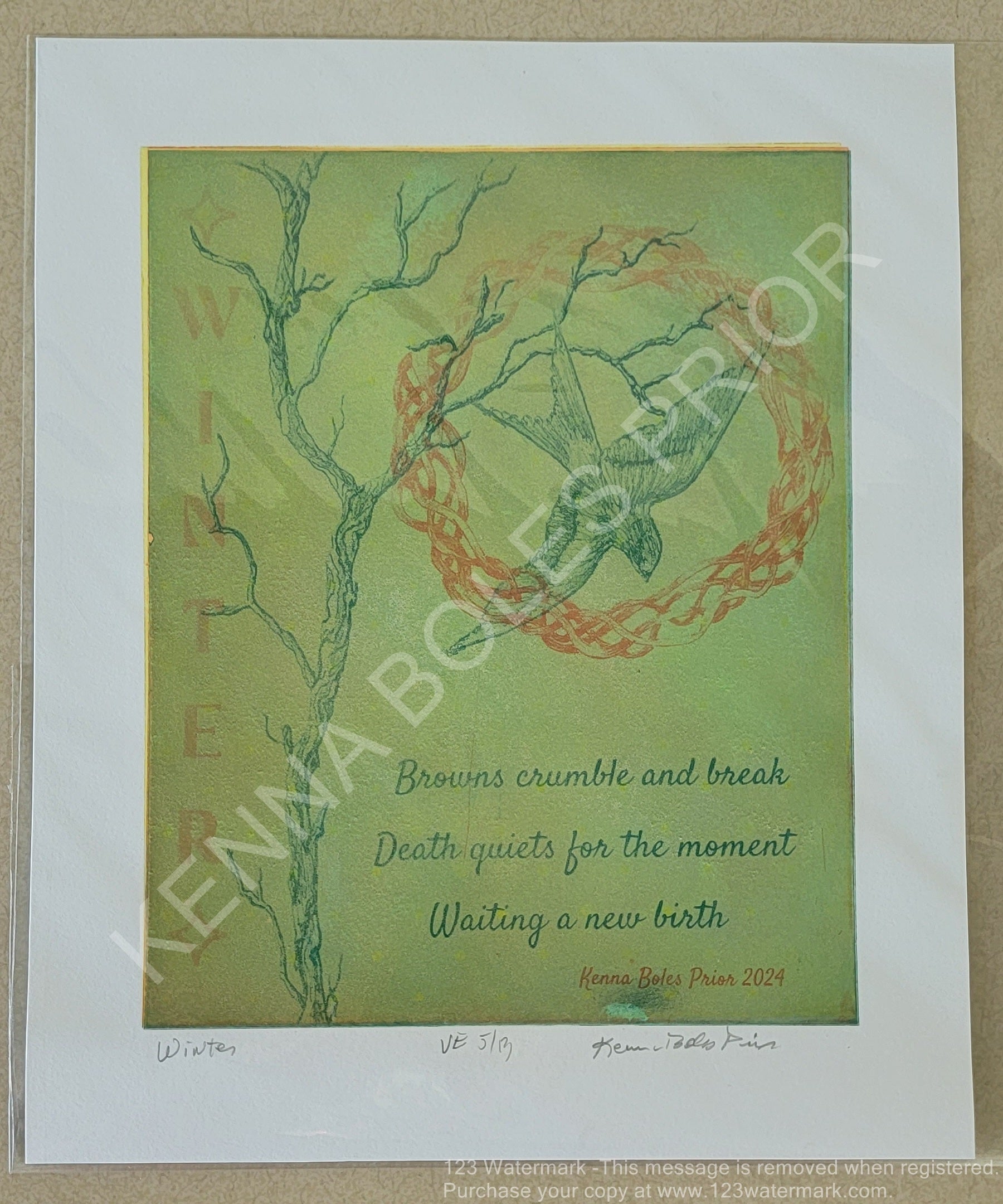 Kenna Boles Prior Original Artwork - 8" x 10" Photogravure - Sparrow "Winter" (MAKER'S SECOND)
