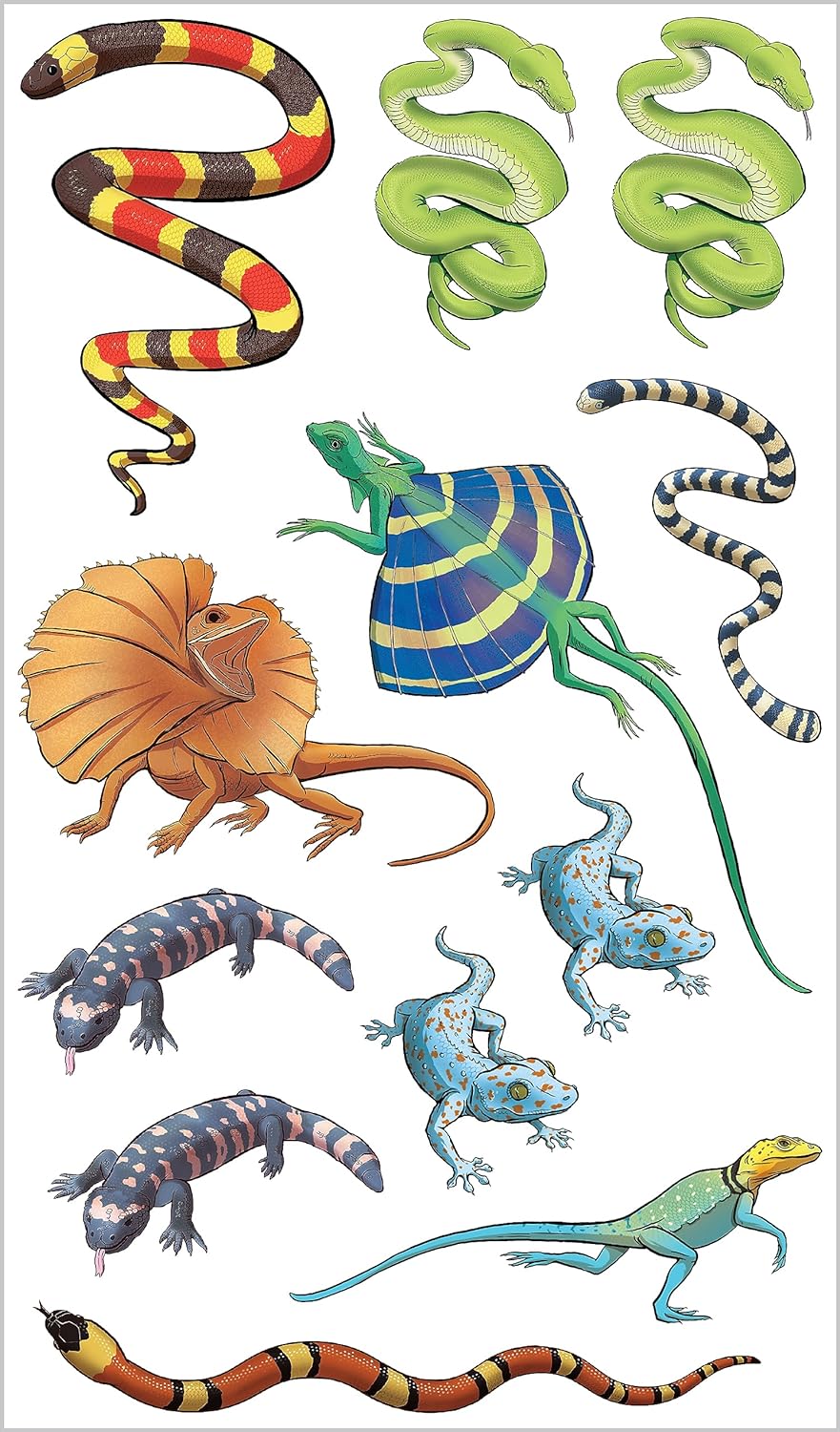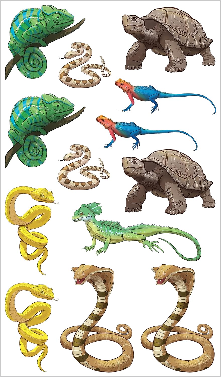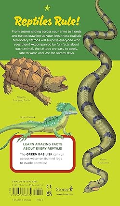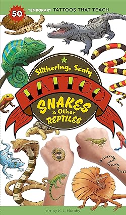Kids can display their love of slithering snakes and remarkable reptiles with 50 fun and educational Tattoos That Teach, featuring realistic art and fascinating facts about the creatures.