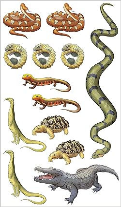 Snakes and reptiles are a fascinating favorite of animal lovers of all ages. These cool and creepy creatures slither, swim, stalk, and crawl across every page of Slithering, Scaly Tattoo Snakes & Reptiles. From the venomous Viper and Gila Monster to the nocturnal Gecko and camouflaging Chameleon, reptile-crazy kids will love to wear temporary art of their favorite species! 50 colorfully illustrated temporary tattoos are scientifically accurate and easy to apply with just a little water. Each featured species is accompanied by fun and fascinating facts. Did you know that the Texas Horned Lizard can startle predators by squirting blood from their eyes at a distance of up to five feet? Or that the Collared Lizard can run using only its back legs? Kids will love quizzing their friends on newly learned animal trivia while showing off their interesting ink.
