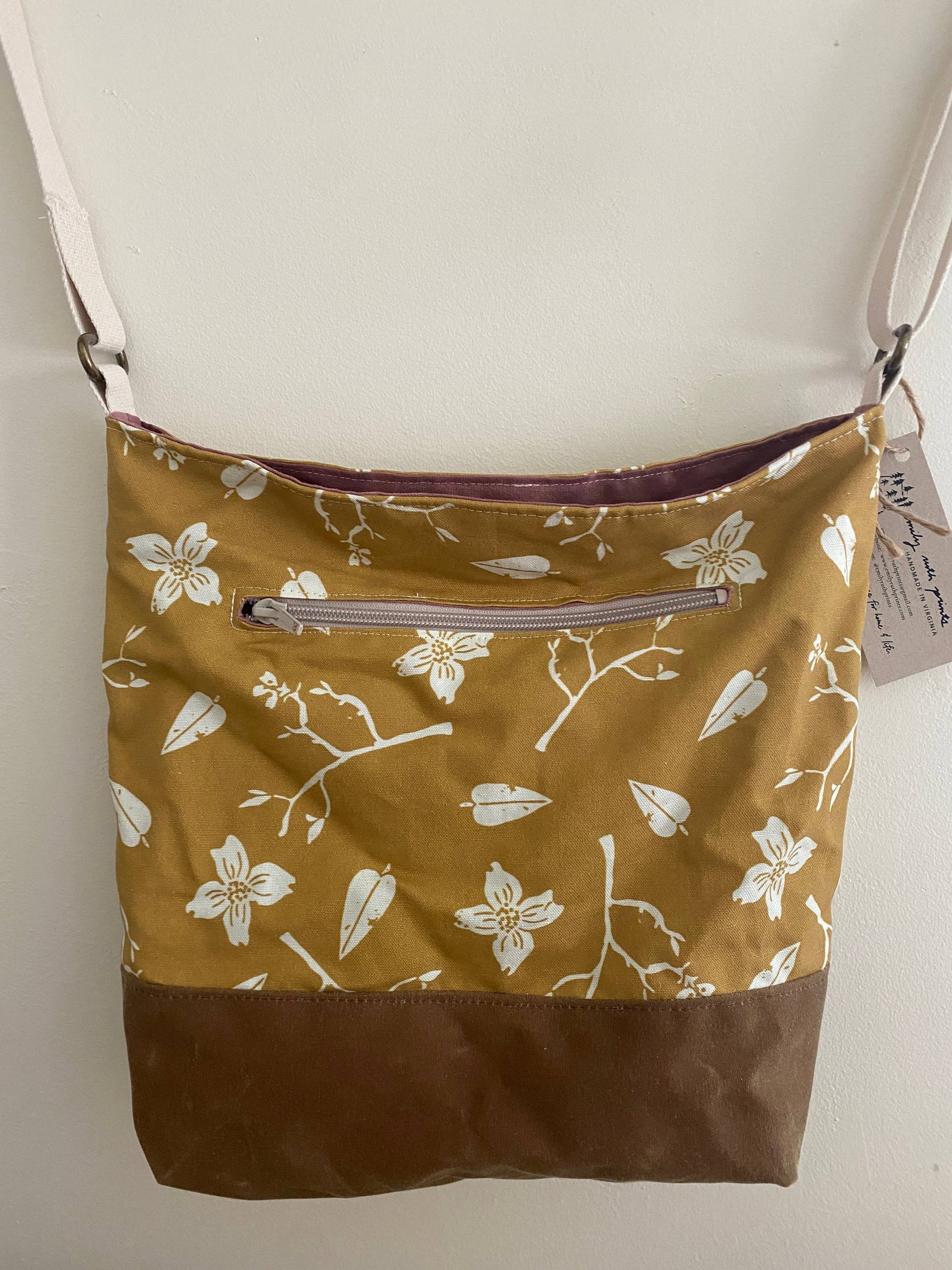 Crossbody Bag - Waxed Canvas - Dogwood Blooms