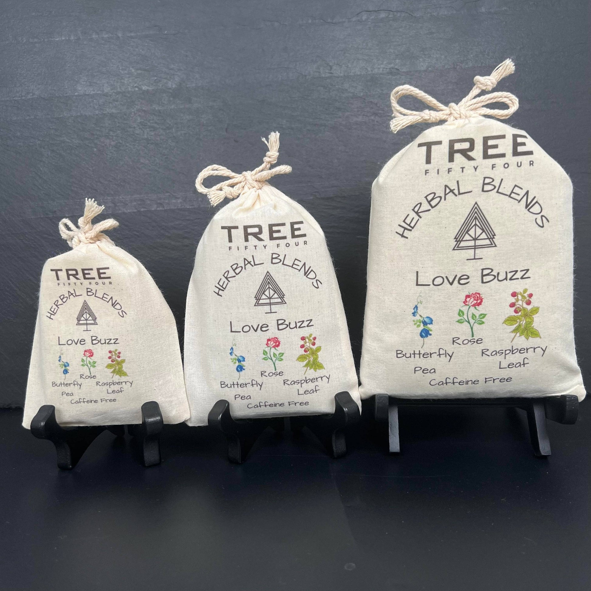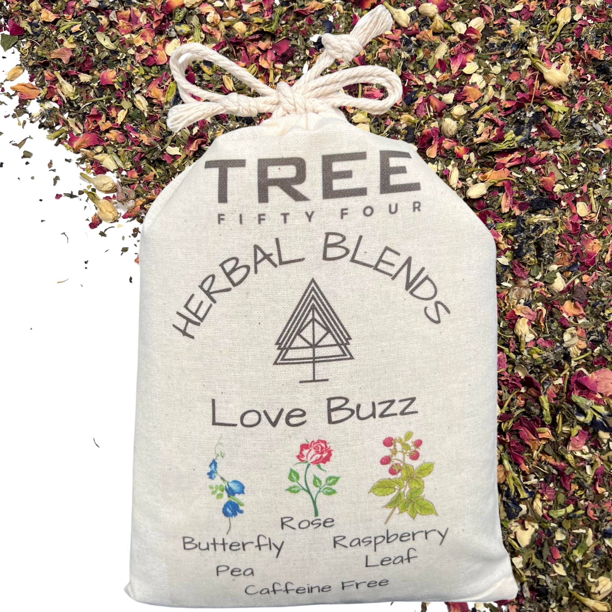 Loose Tea in Drawstring Sachet - Tree Fifty Four - Love Buzz Herbal Tea Blend (3oz)