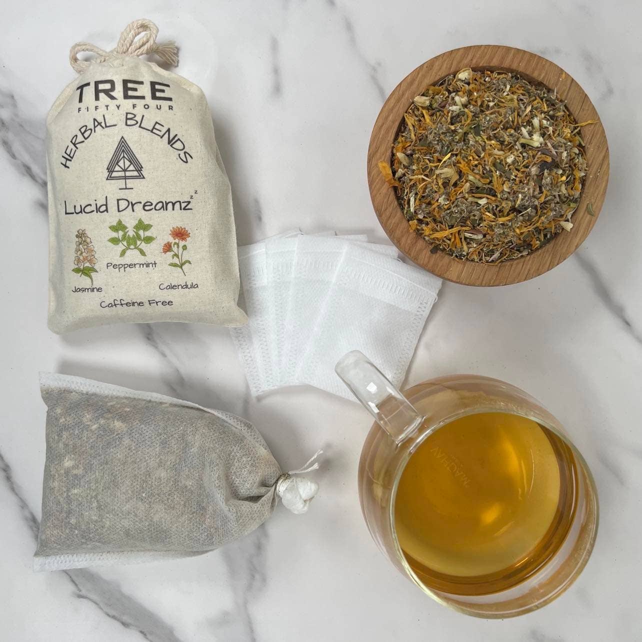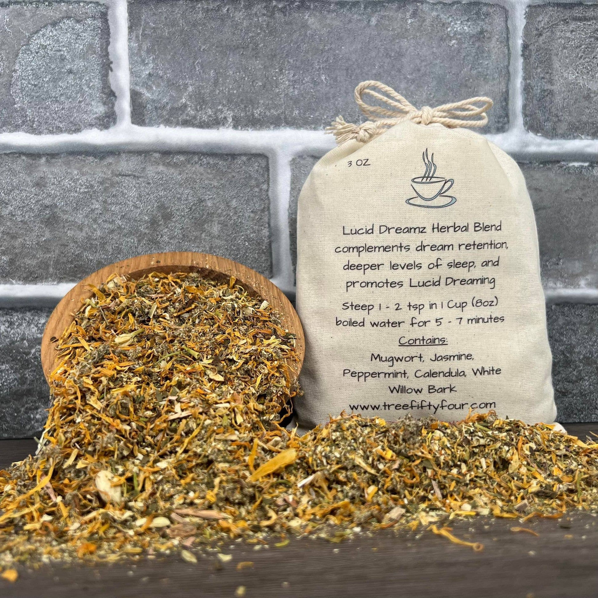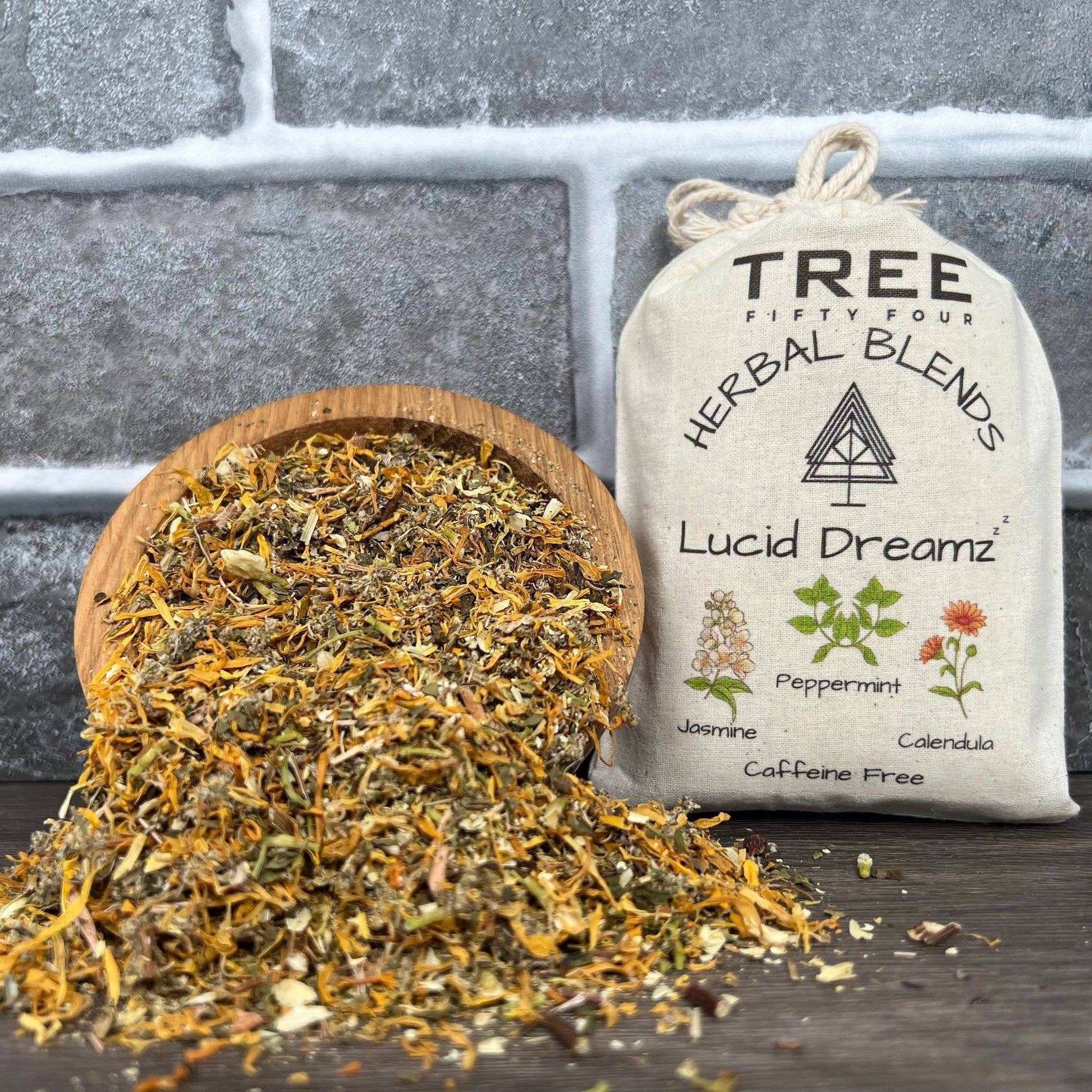 Loose Tea in Drawstring Sachet - Tree Fifty Four - Lucid Dreamz Herbal Tea Blend (3oz)