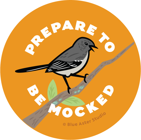 Pinback Button - Bird Mockingbird - "Prepare to be Mocked"