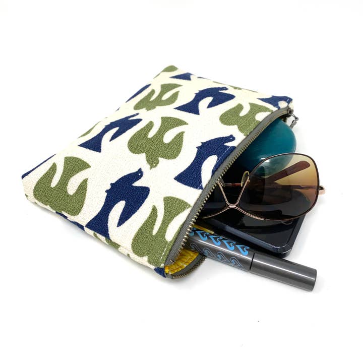 Pouch - Organic Slim Zip - Olive and Navy on the Fly