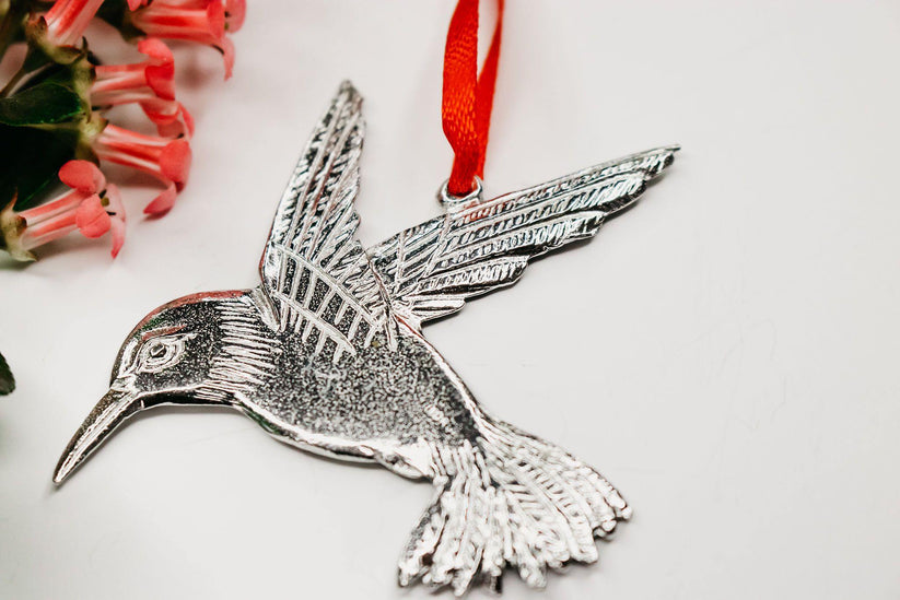 Share your love of hummingbirds by hanging this handcrafted ornament on your Christmas tree or gift to a friend to enjoy.