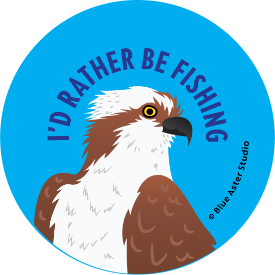 Pinback Button - Bird Osprey - "I'd Rather Be Fishing"