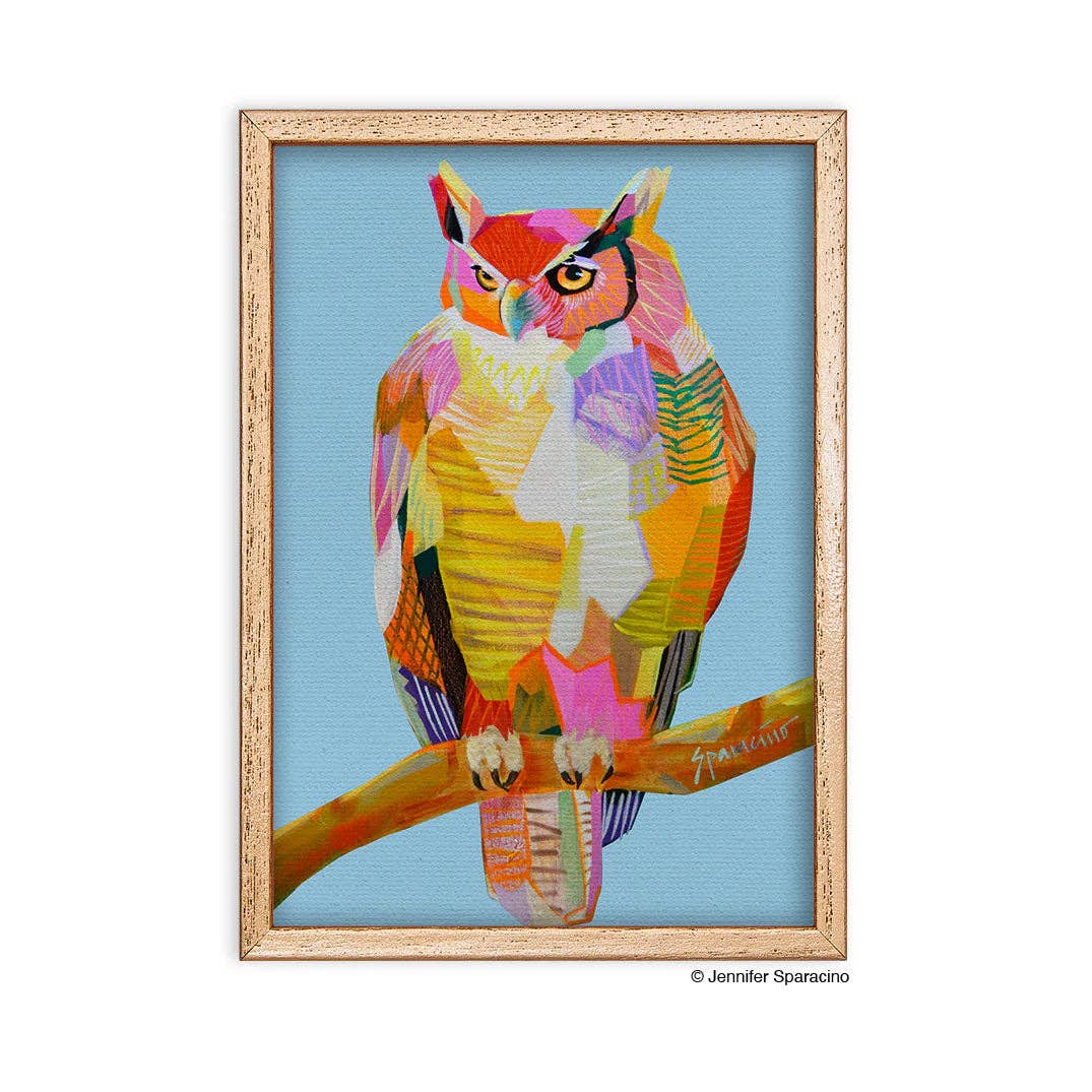 Framed Canvas Art - "Owl" by Jennifer Sparacino (5x7)