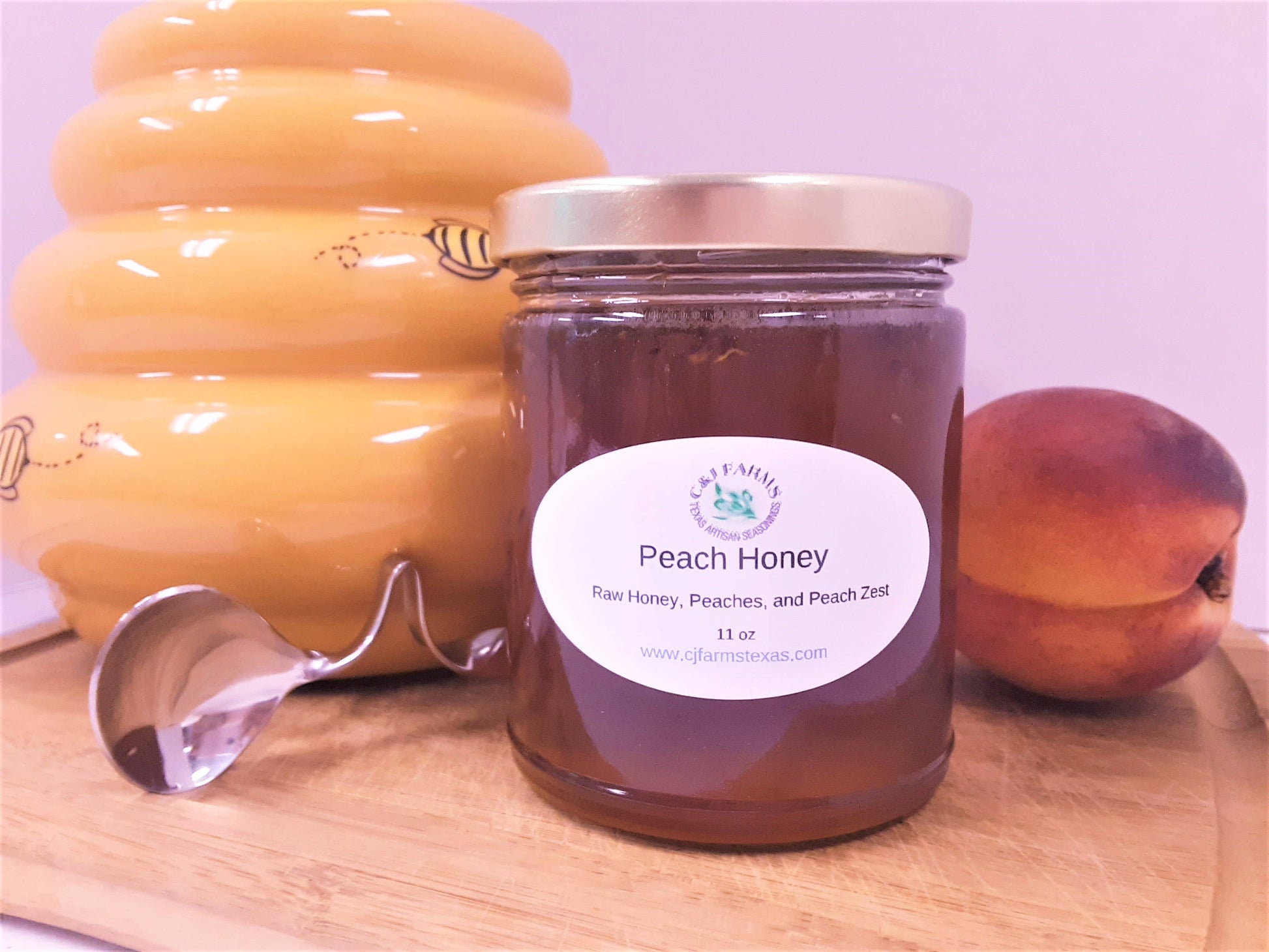 Nothing screams summer like peaches do! Enjoy this gourmet honey in your tea, drizzled over chicken breast, pork loin, or even ice cream! This is a honey we're sure will bring everyone together at the dinner table! Please note that due to the fresh peaches, and peach zest, this honey is a tad bit runnier than other infused honeys from C&J Farms.