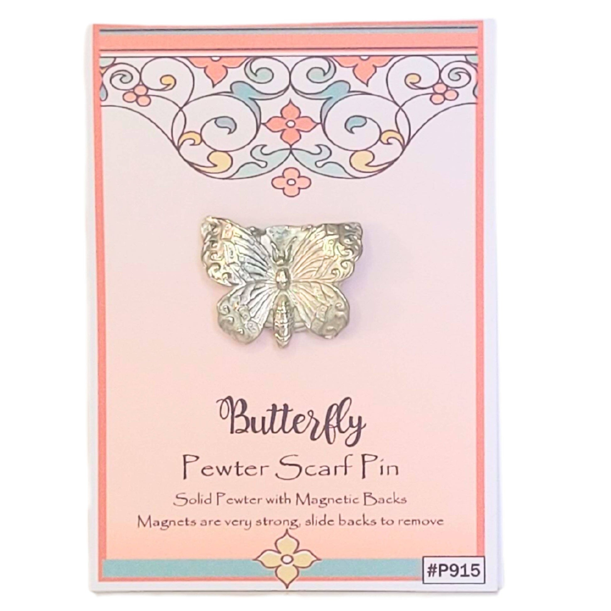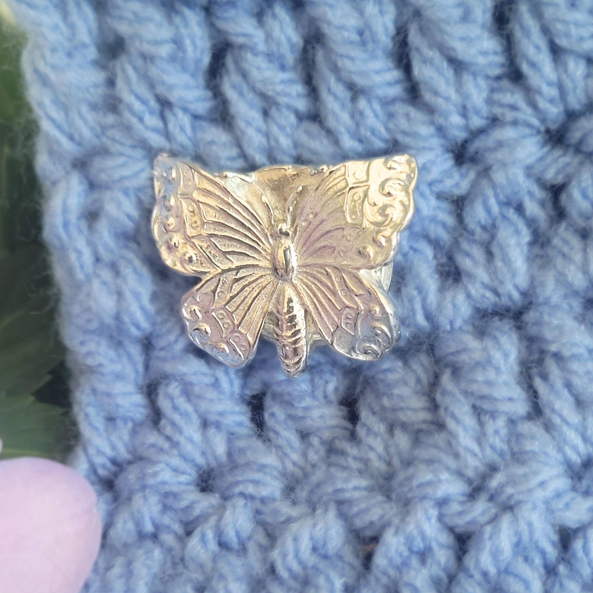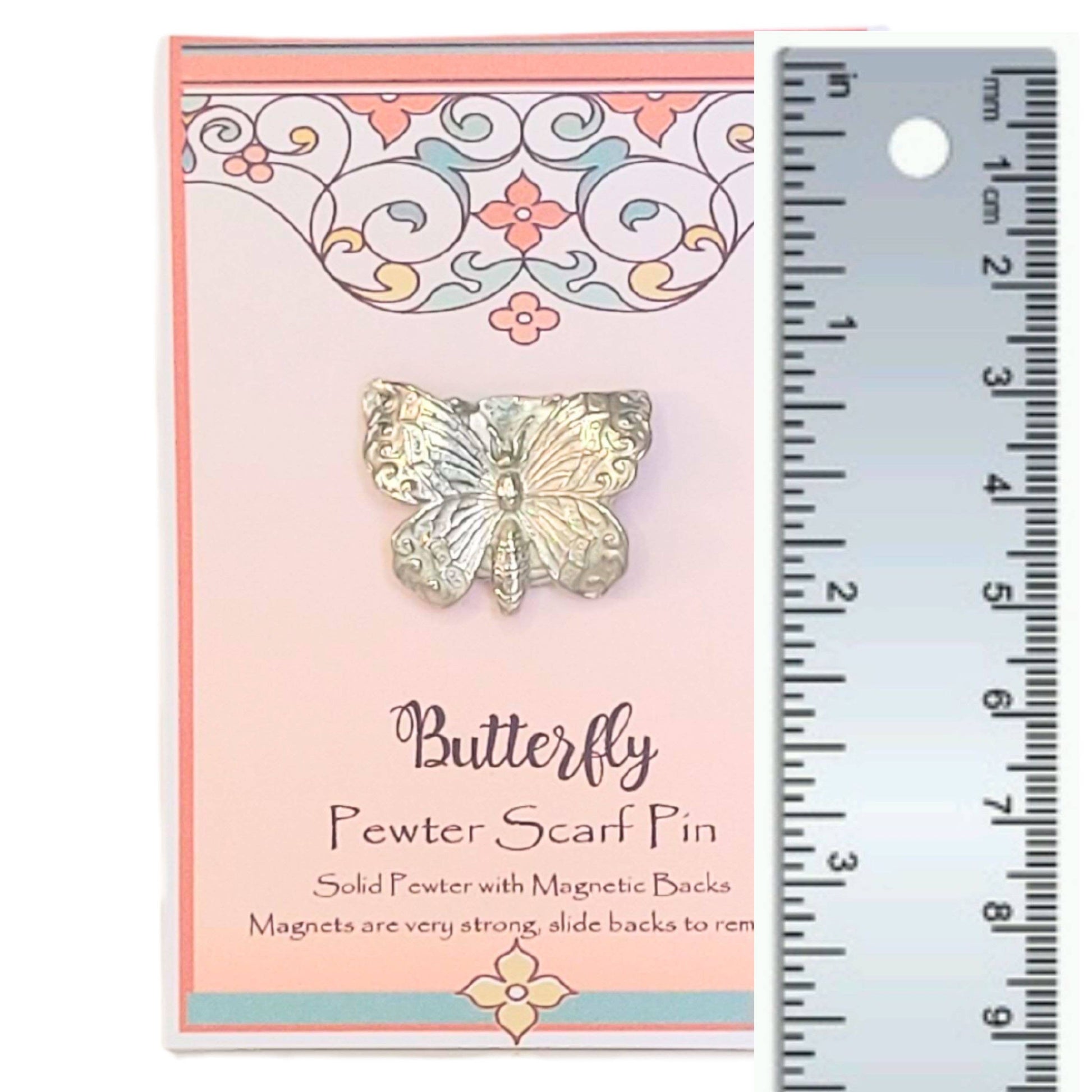 The butterfly pin measures approximately 1.12" x 0.85", making it a subtle and versatile accessory.