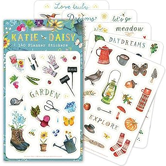 Customize your planner with these colorful stickers featuring wildflowers, butterflies, bees, gardening tools, vegetables, and hand-lettered words to mark special days.