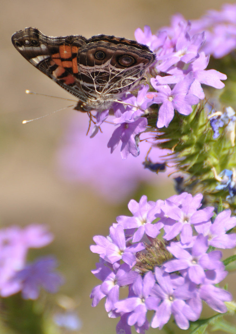 A great choice! This low, trailing or creeping perennial is drought tolerant and long-blooming. Its range is throughout the great plains and portions of the southwest. Butterflies are attracted to the masses of purple blooms. You will enjoy the sweet fragrance.
