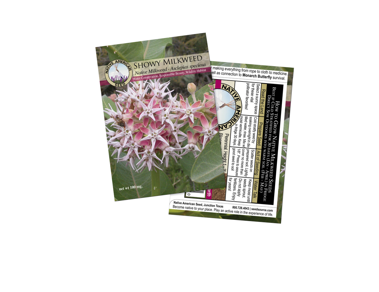 Used by many tribes for making everything from rope to cloth to medicine this beautiful milkweed has a very interesting ethnobotanical history. Though once common, it was targeted for eradication because of it's perceived toxicity to livestock. This same toxicity is critical for the survival of monarch butterflies, it is now clear that the survival of both species are tied together. Share in the history & future by planting these seeds today. Found in high plains of Texas north to Canada and west to California.