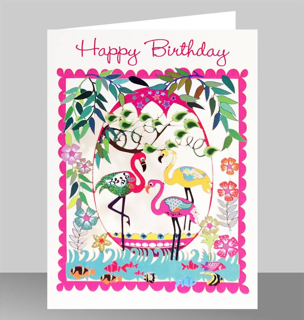 Greeting Card - Laser Cut & Frameable - Birthday Flamingo (Single Card)