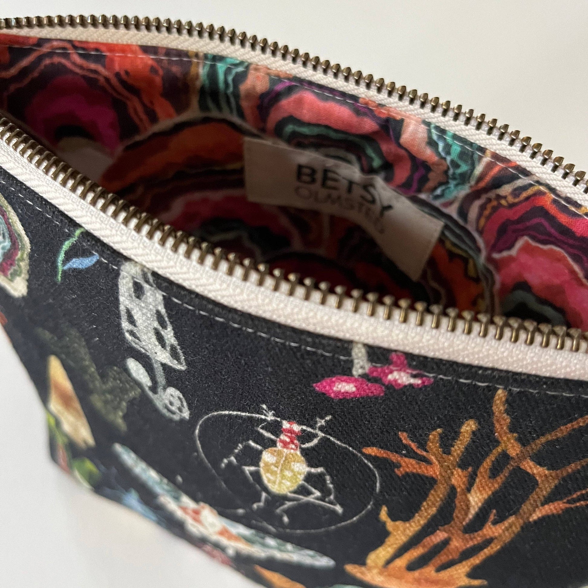 Featuring an original watercolor design by Betsy Olmsted, this pouch is double-sided, containing a happy surprise print on the inside!