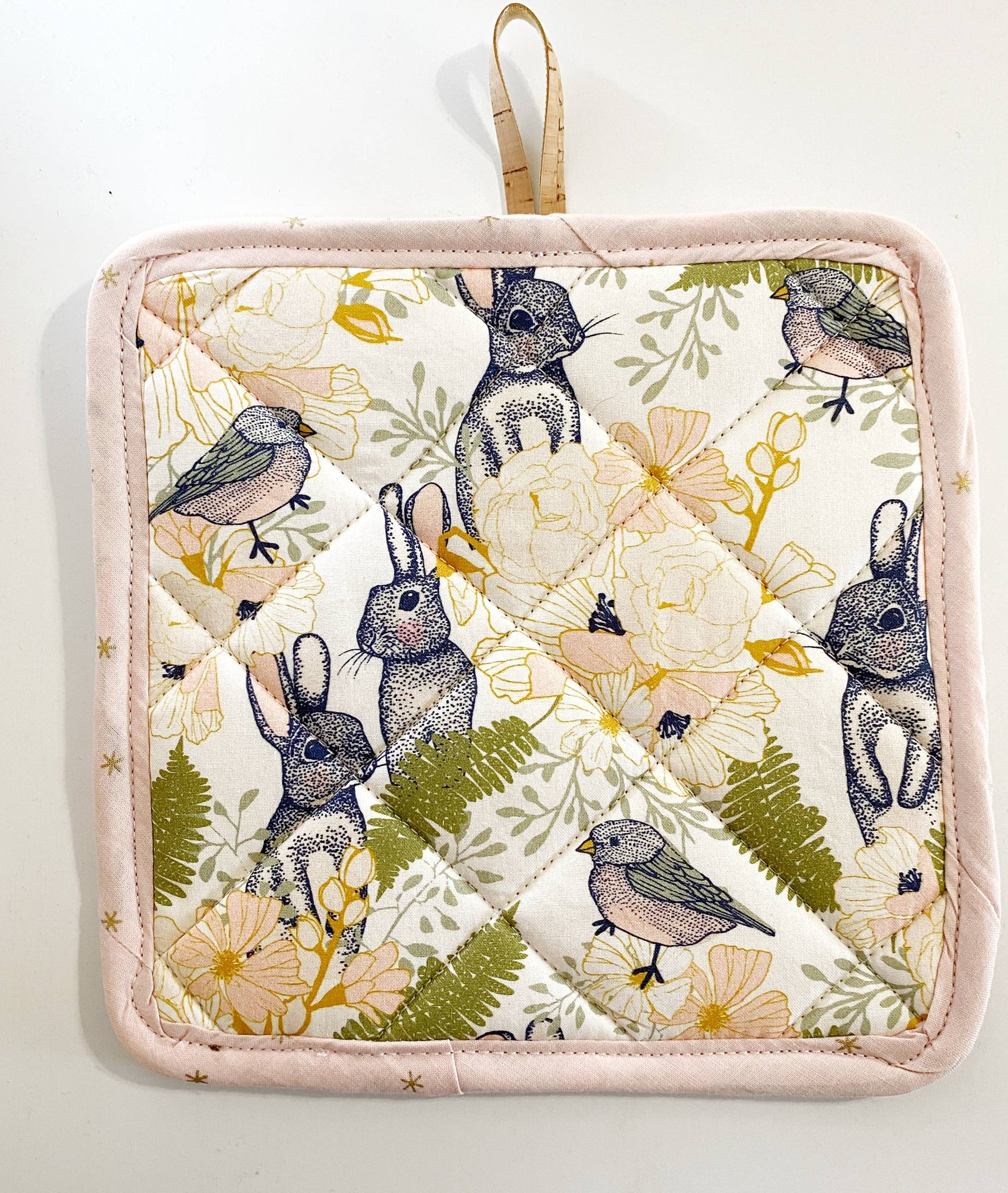 Pot Holder (no pocket) - Cork & Cotton Sustainable - Rabbits and Birds