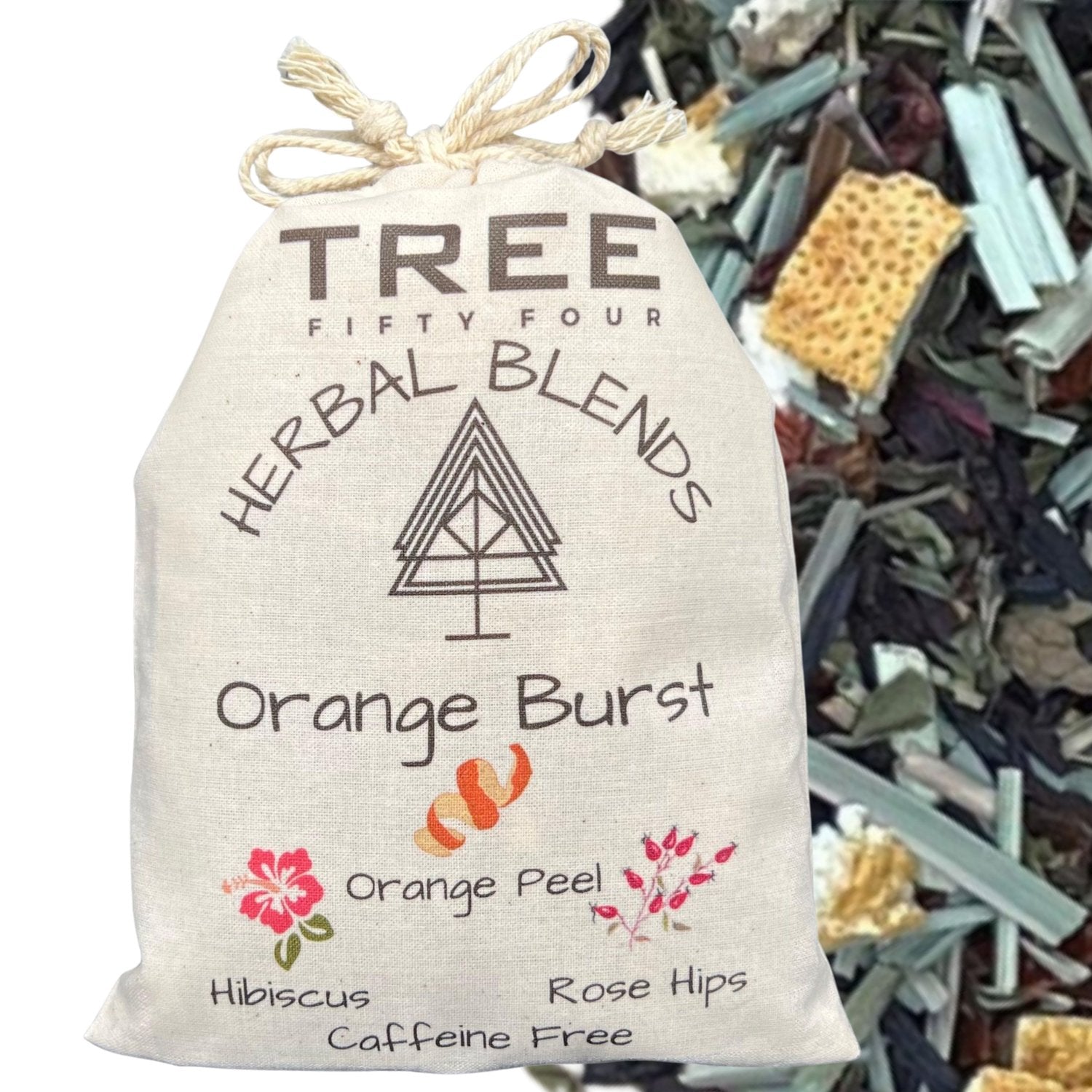 Loose Tea in Drawstring Sachet - Tree Fifty Four - Restoration Herbal Tea Blend Orange Burst (3oz)